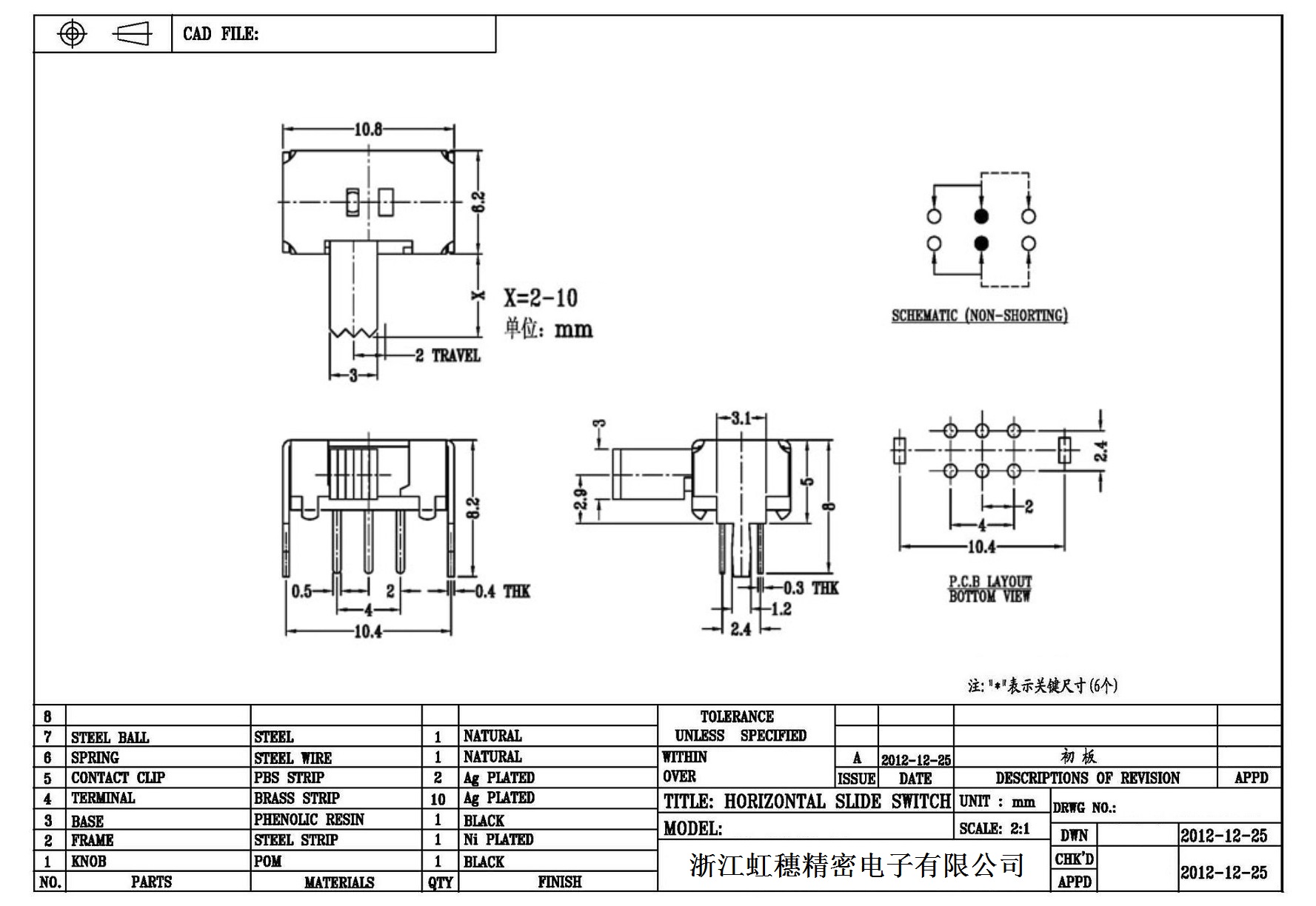 Horizontal toggle switch sidedial/horizontal slide switch technical indicators
