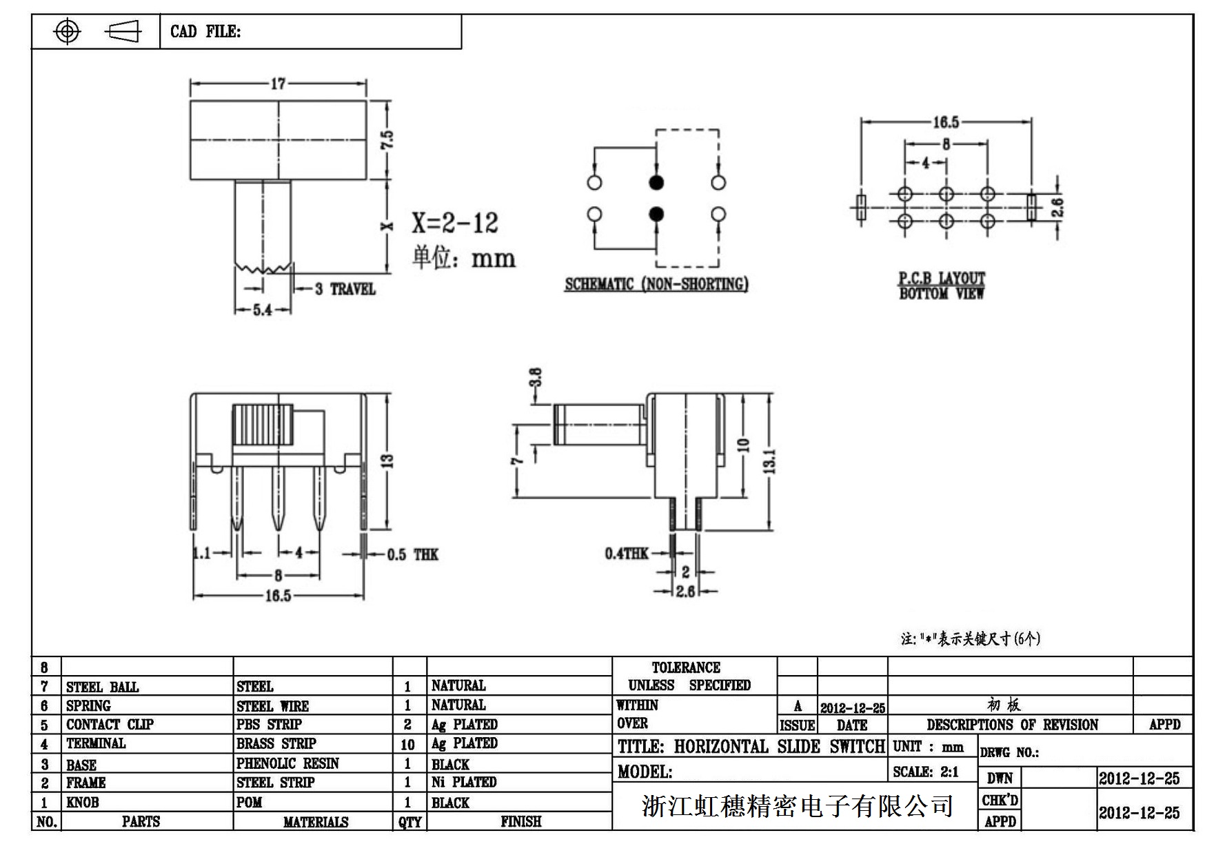 Horizontal toggle switch sidedial/horizontal slide switch technical indicators