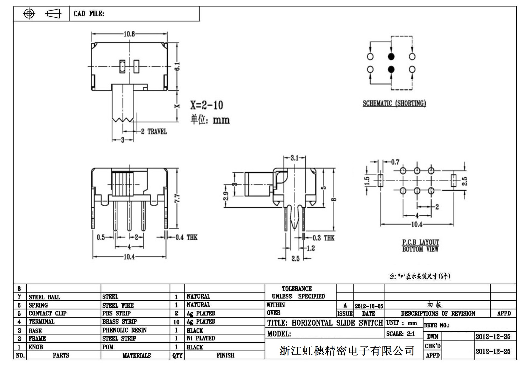 Horizontal toggle switch sidedial/horizontal slide switch technical indicators
