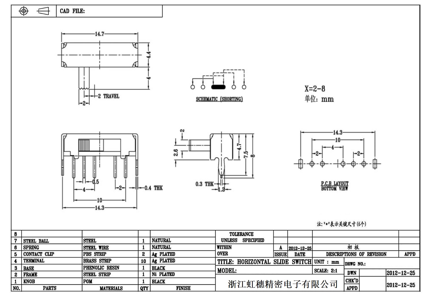 Horizontal toggle switch sidedial/horizontal slide switch technical indicators