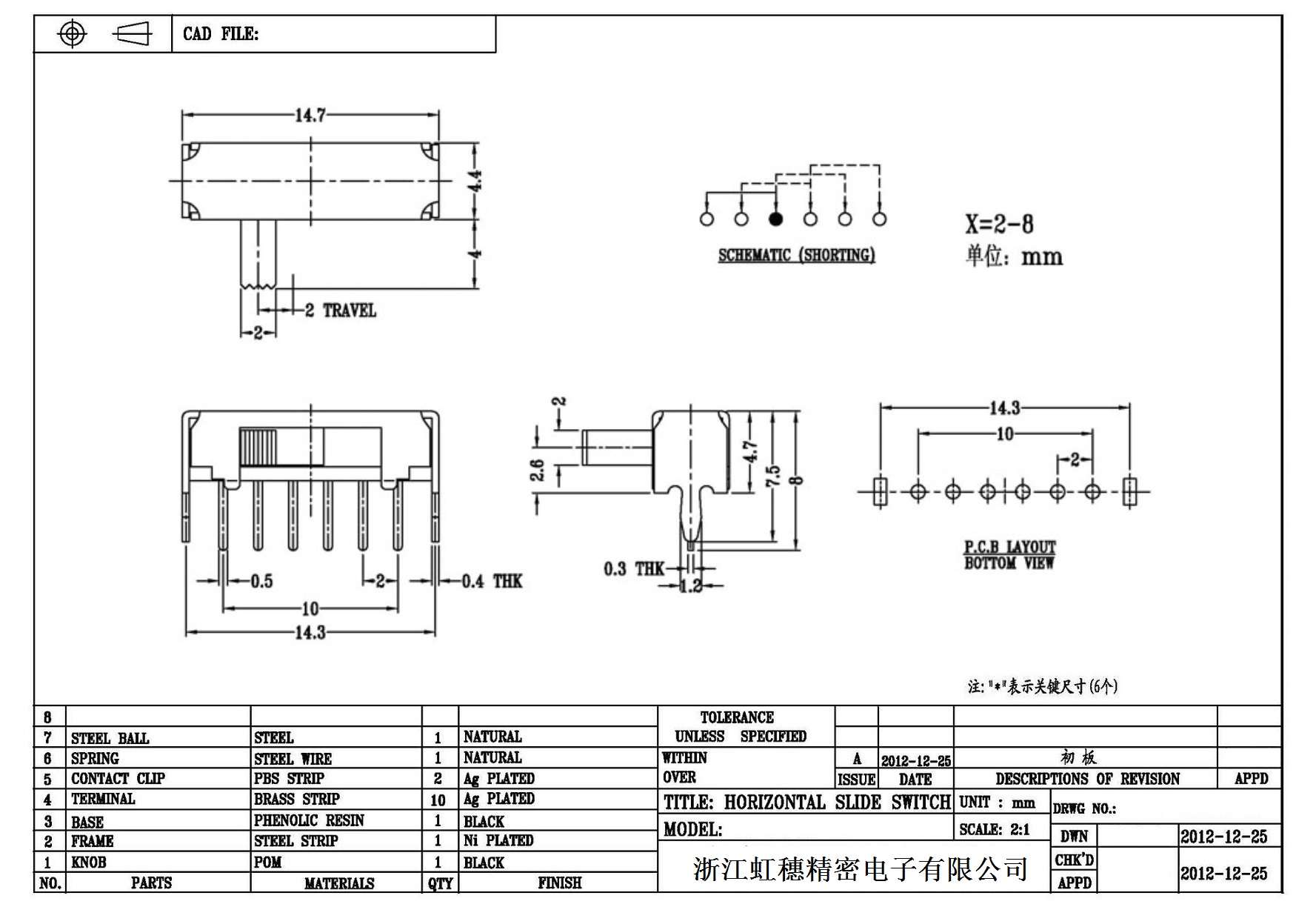 Horizontal toggle switch sidedial/horizontal slide switch technical indicators