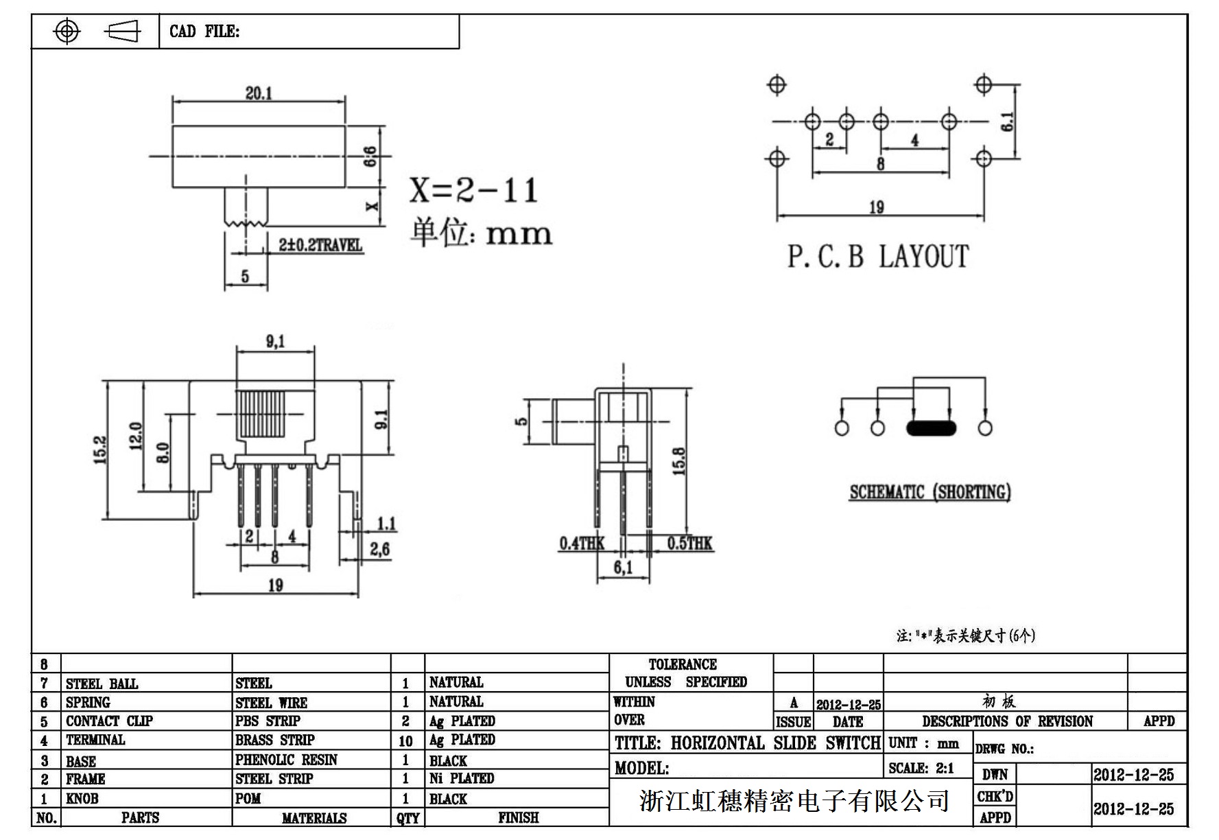 Horizontal toggle switch sidedial/horizontal slide switch technical indicators