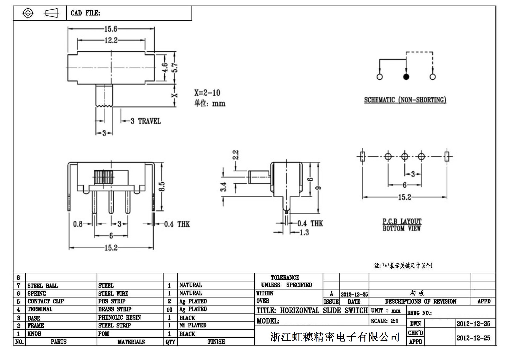 Horizontal toggle switch sidedial/horizontal slide switch technical indicators