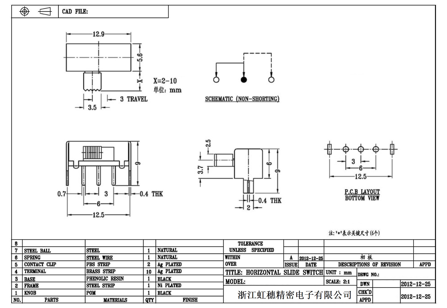 Horizontal toggle switch sidedial/horizontal slide switch technical indicators