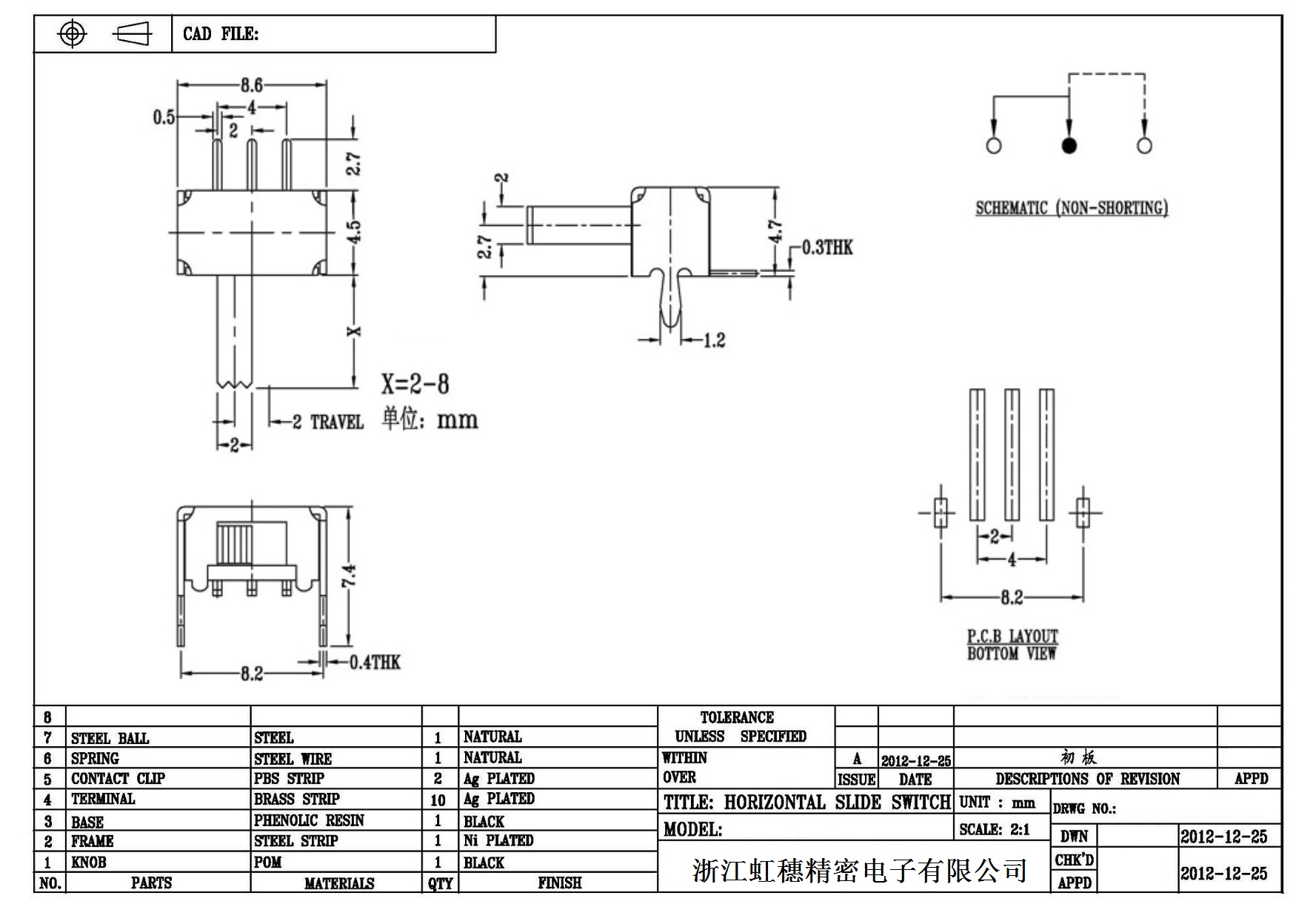 Horizontal toggle switch sidedial/horizontal slide switch technical indicators