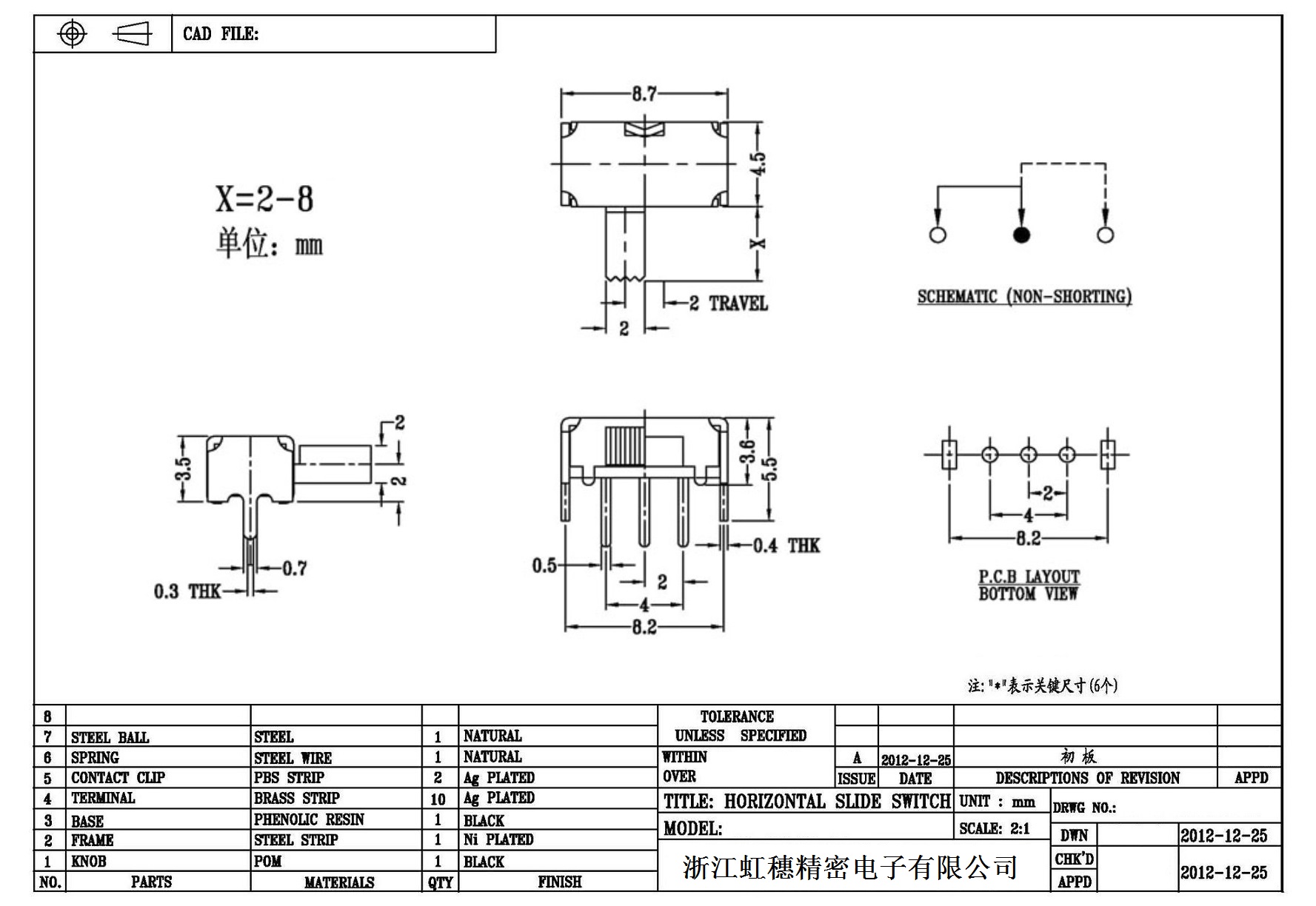 Horizontal toggle switch sidedial/horizontal slide switch technical indicators