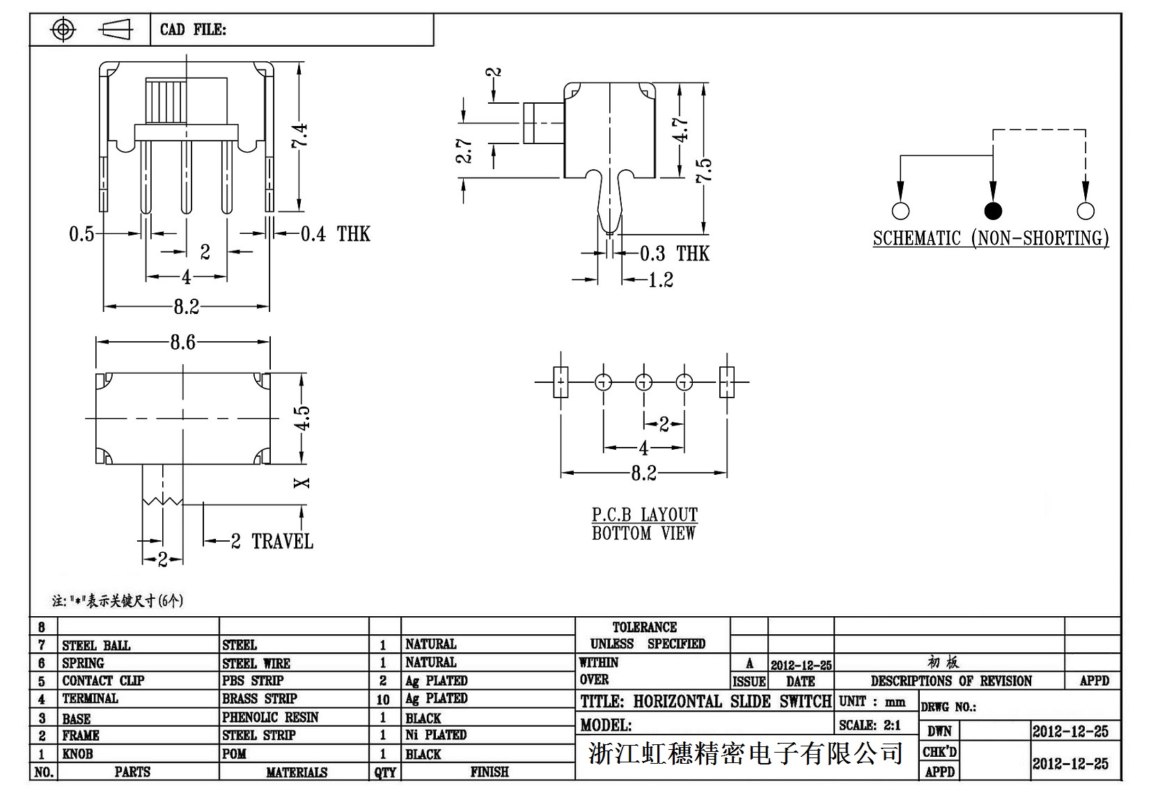 Horizontal toggle switch side dial/horizontal slide switch technical indicators