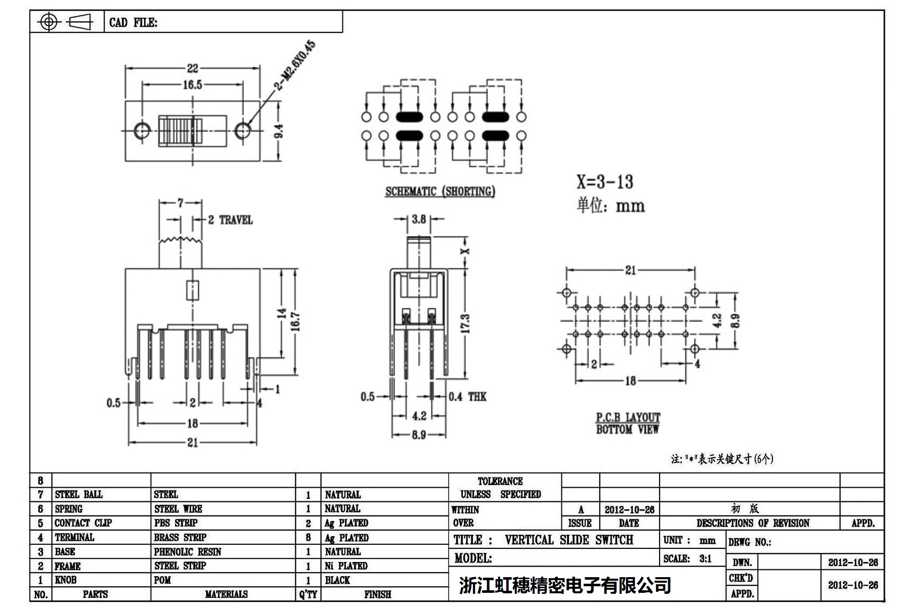 Verticaltoggle switch side dial/ Vertical slide switch technical indicators