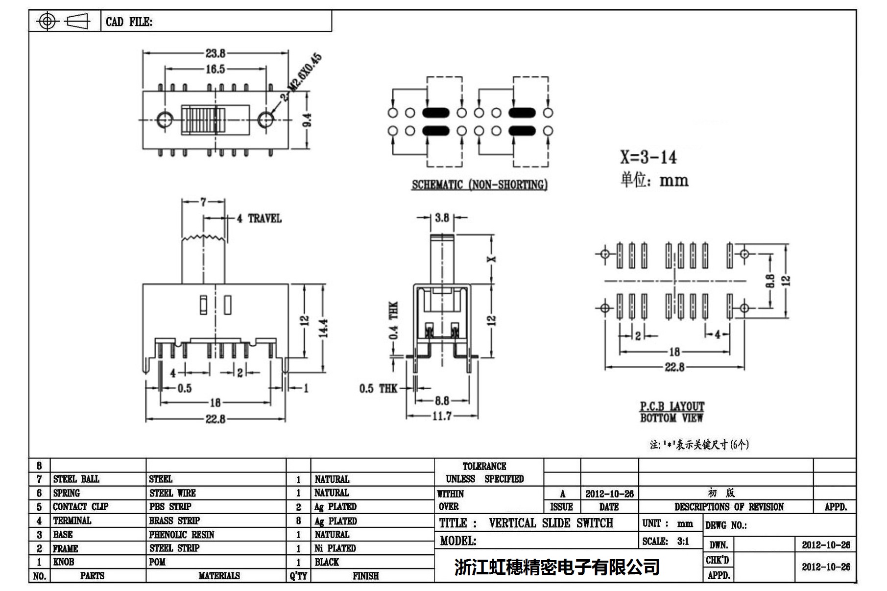 Verticaltoggle switch side dial/ Vertical slide switch technical indicators