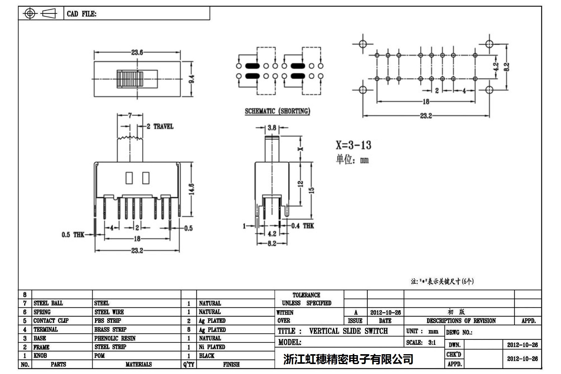 Verticaltoggle switch side dial/ Vertical slide switch technical indicators