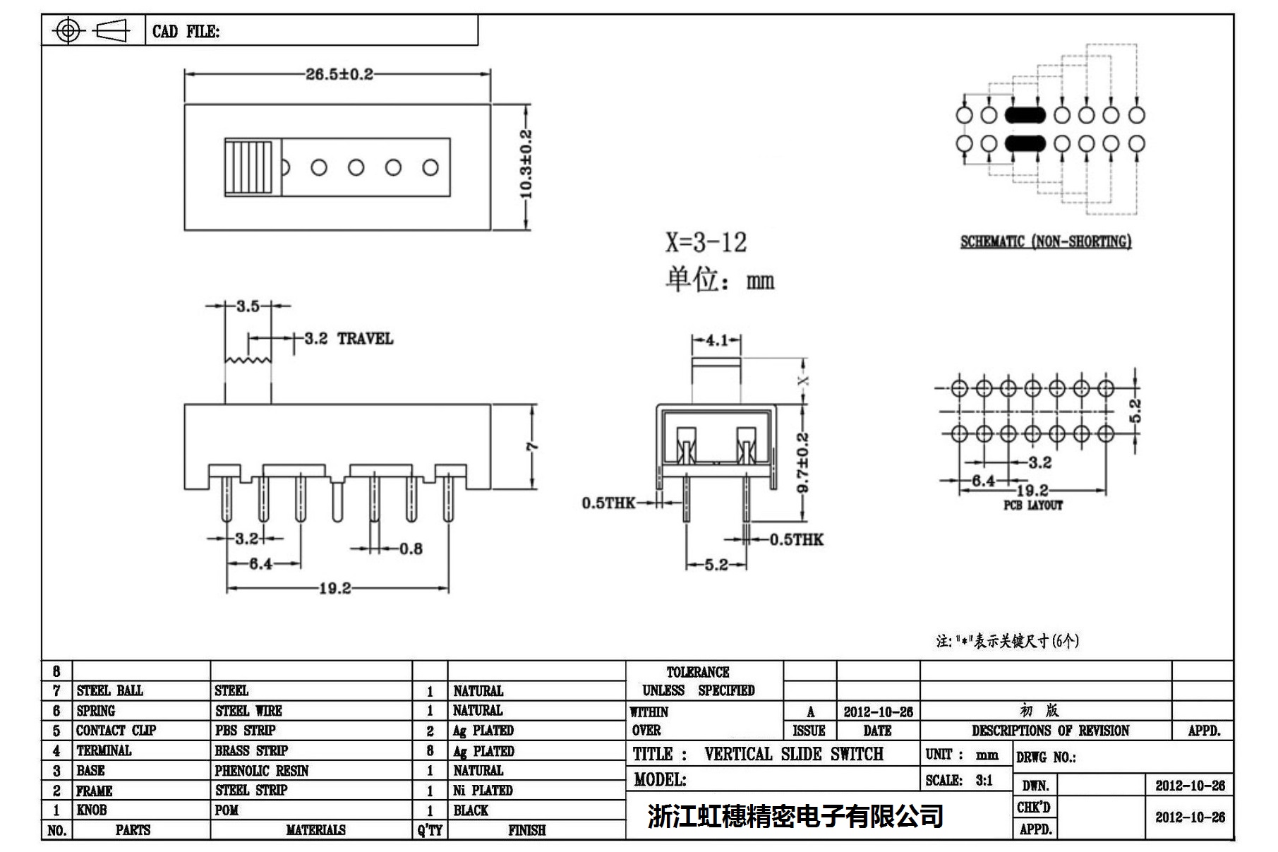 Verticaltoggle switch side dial/ Vertical slide switch technical indicators