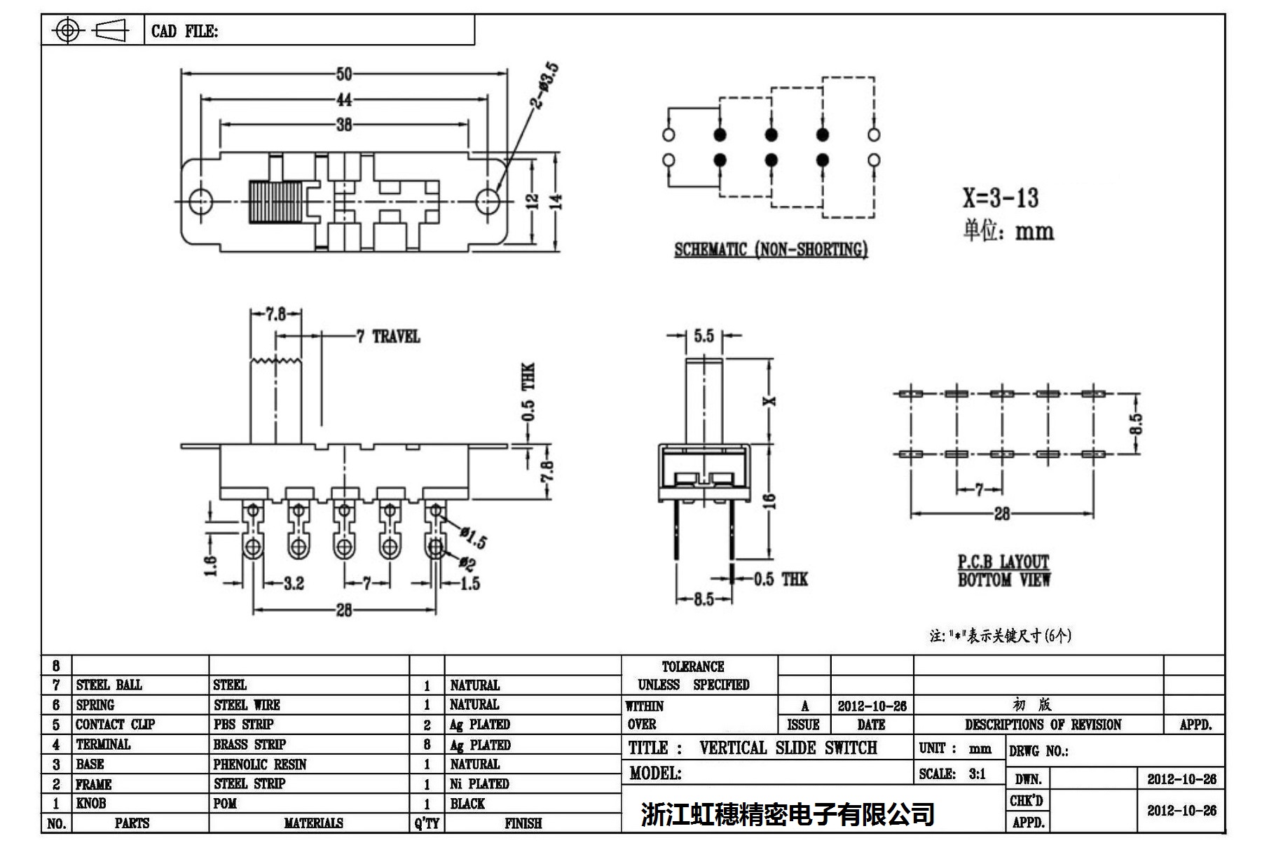 Verticaltoggle switch side dial/ Vertical slide switch technical indicators