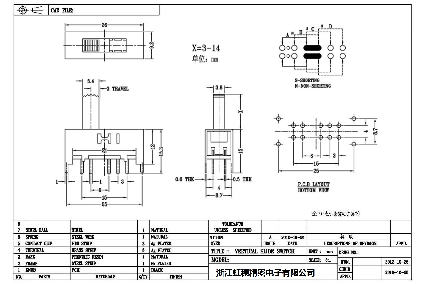Verticaltoggle switch side dial/ Vertical slide switch technical indicators