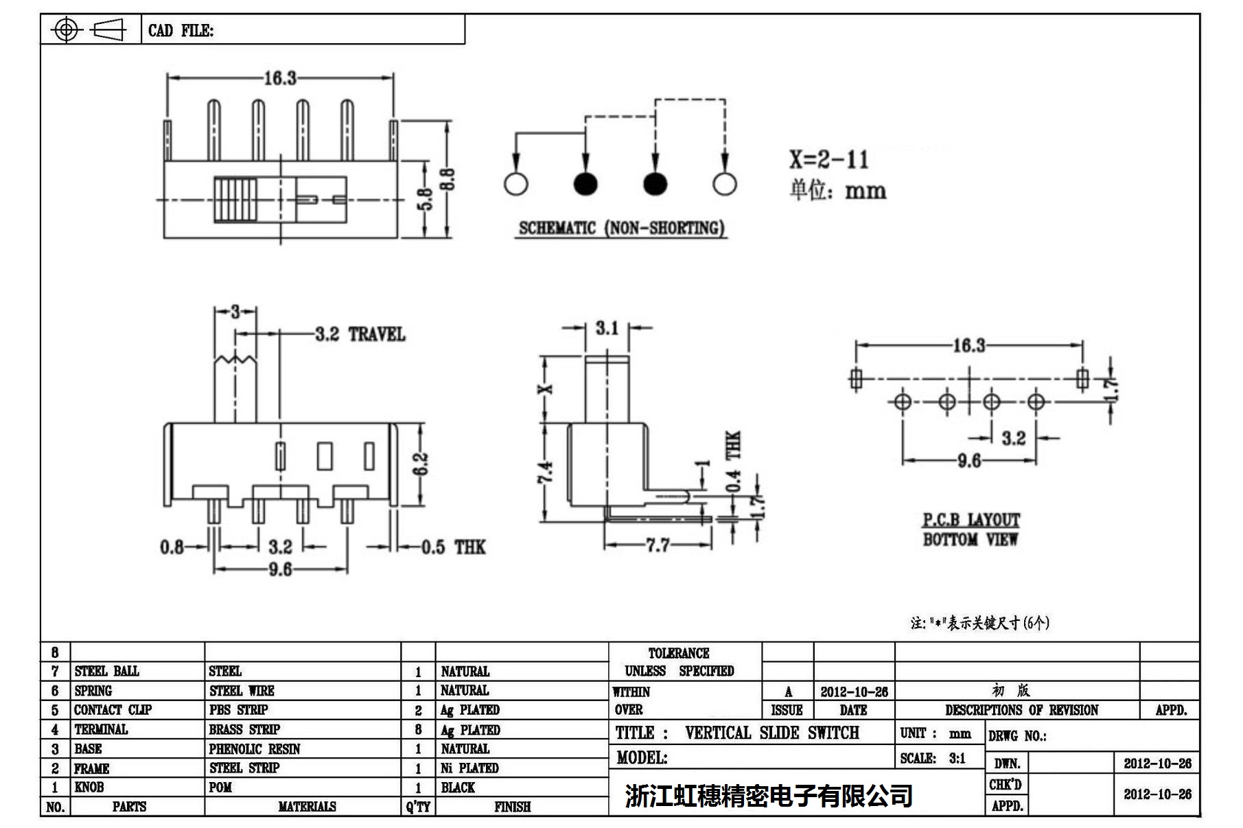 Verticaltoggle switch side dial/ Vertical slide switch technical indicators