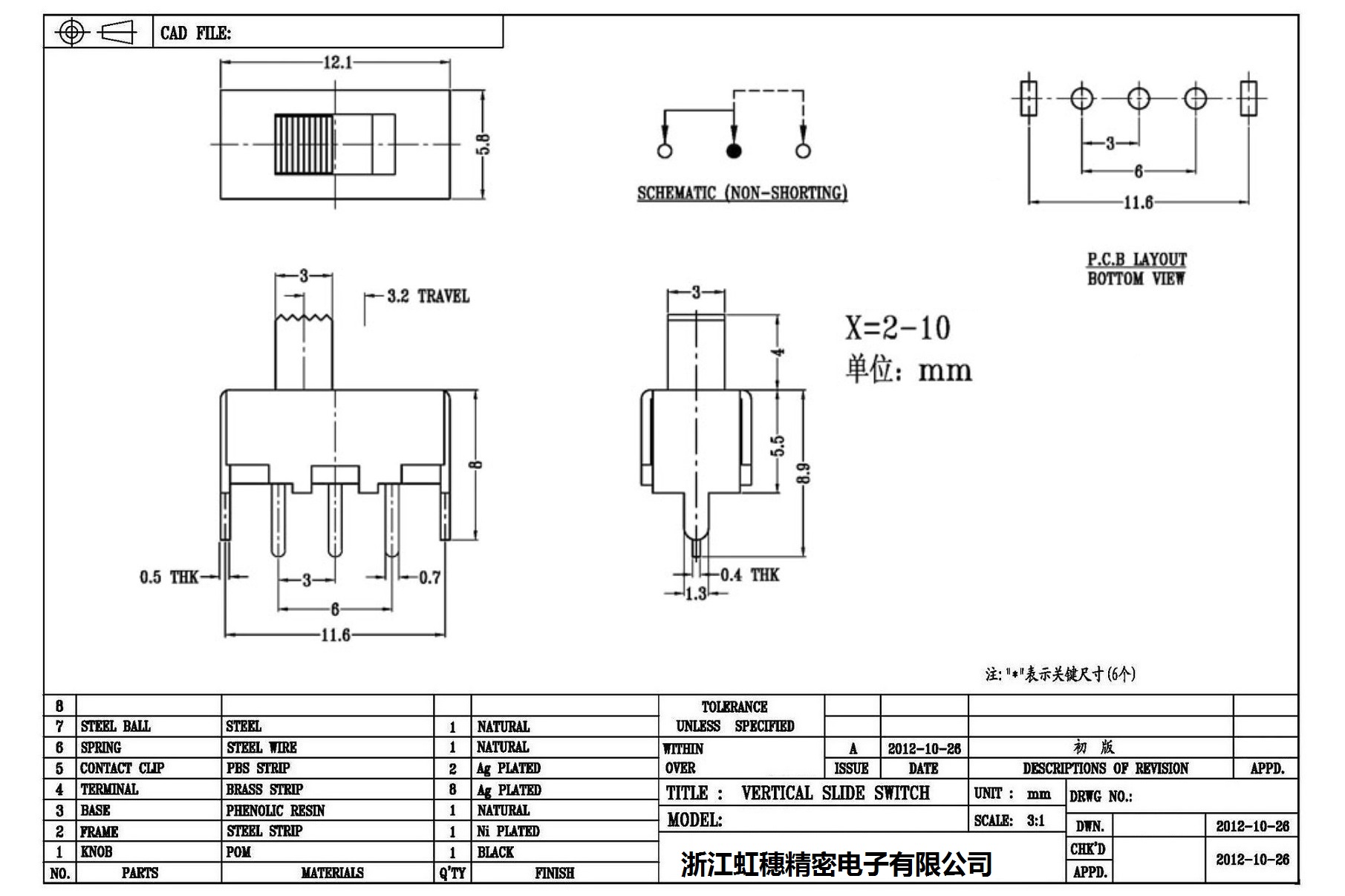 Verticaltoggle switch side dial/ Vertical slide switch technical indicators