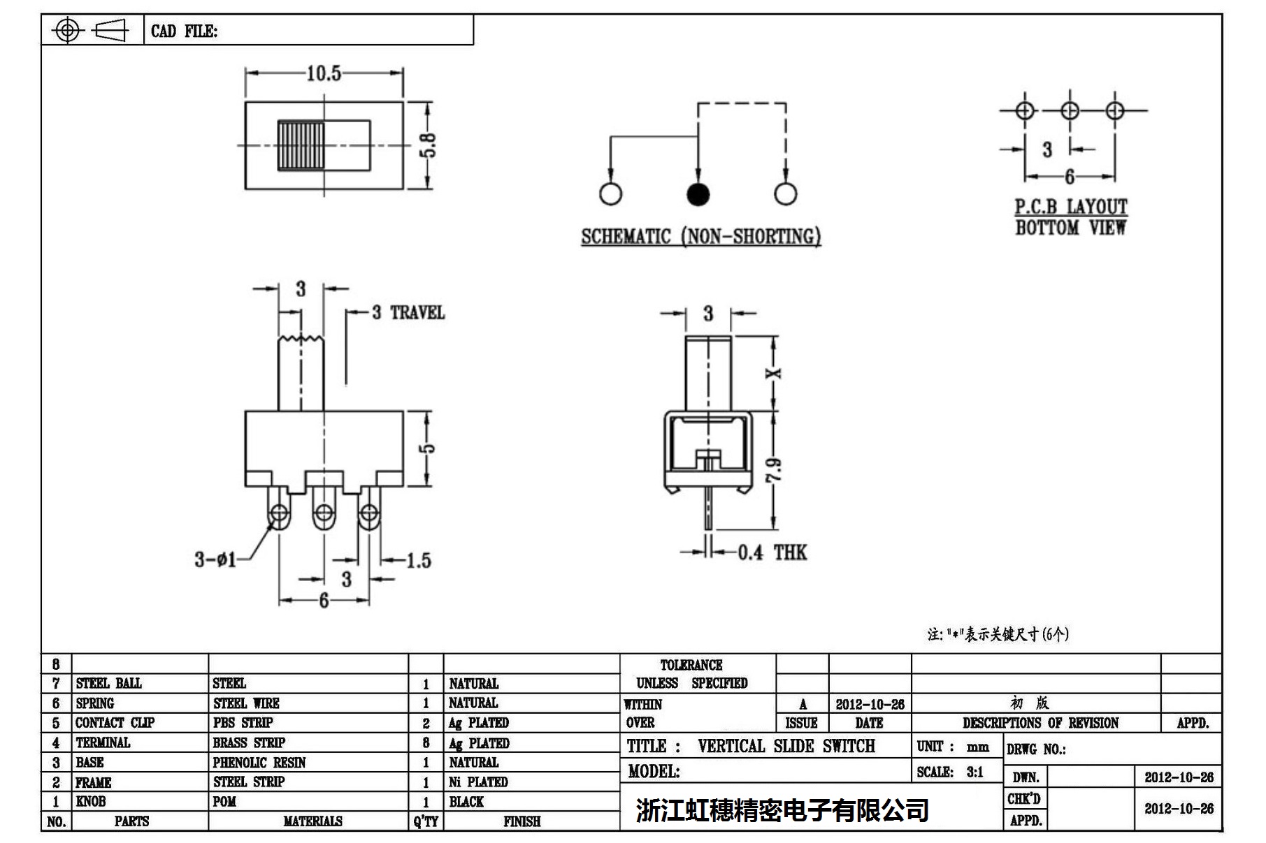 Verticaltoggle switch side dial/ Vertical slide switch technical indicators