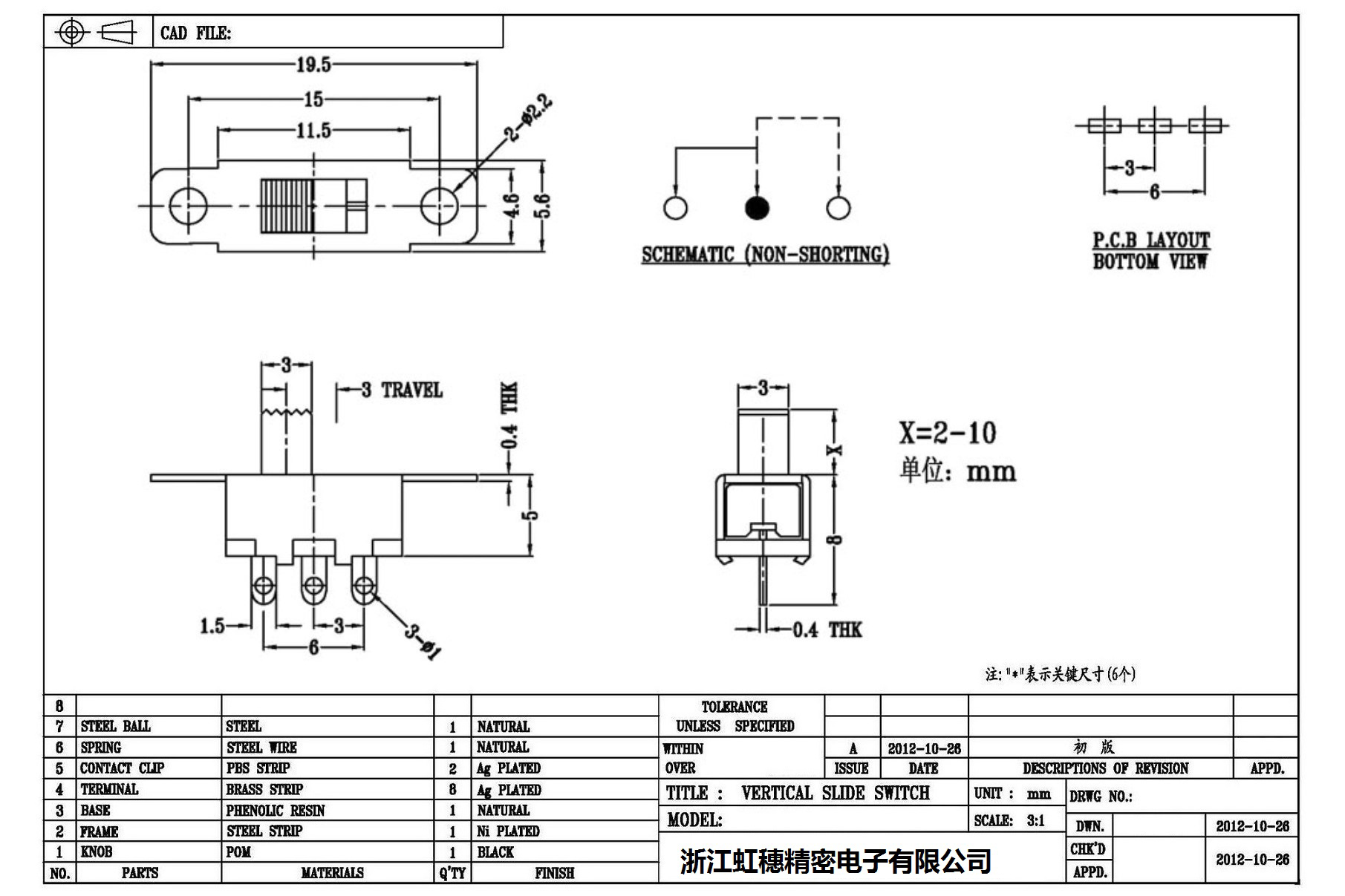 Verticaltoggle switch side dial/ Vertical slide switch technical indicators