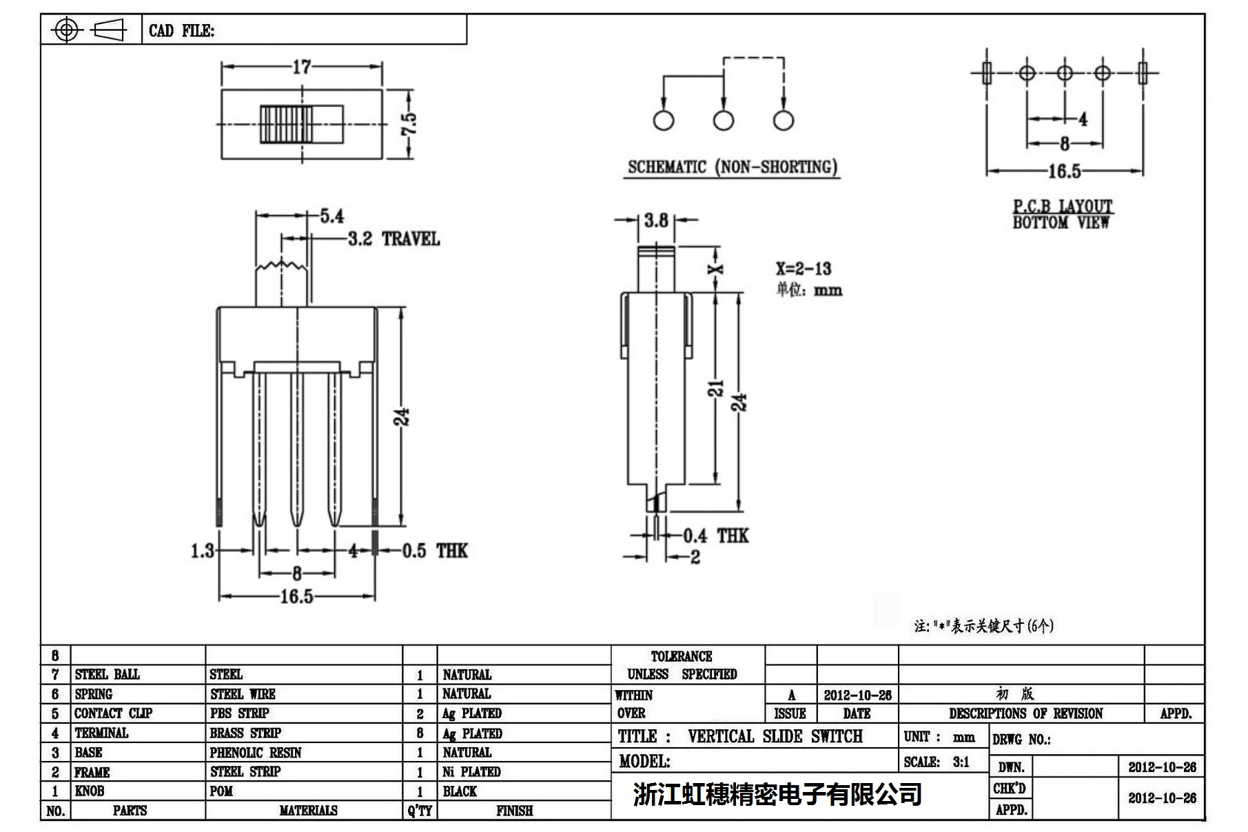 Verticaltoggle switch side dial/ Vertical slide switch technical indicators