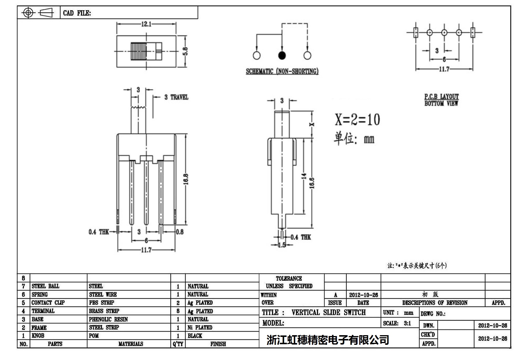 Verticaltoggle switch side dial/ Vertical slide switch technical indicators