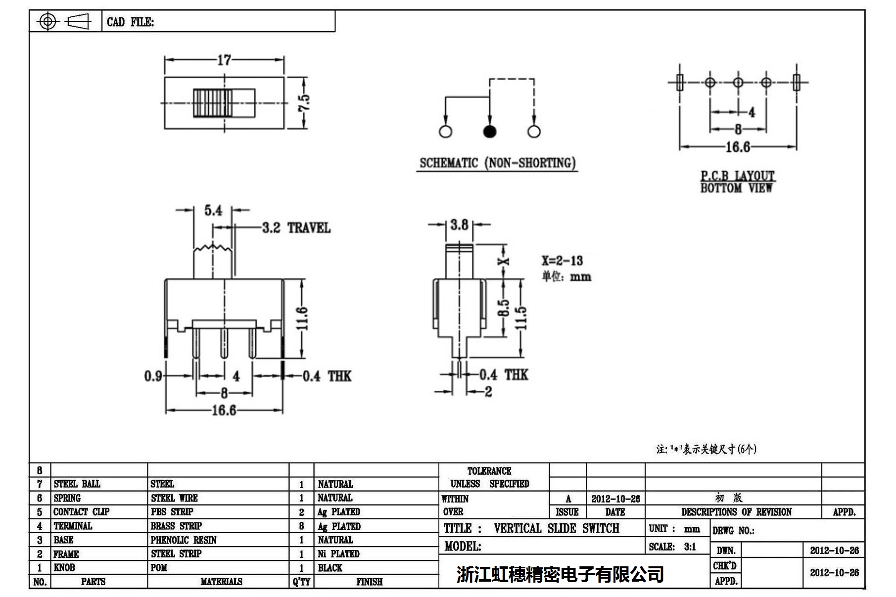 Verticaltoggle switch side dial/ Vertical slide switch technical indicators