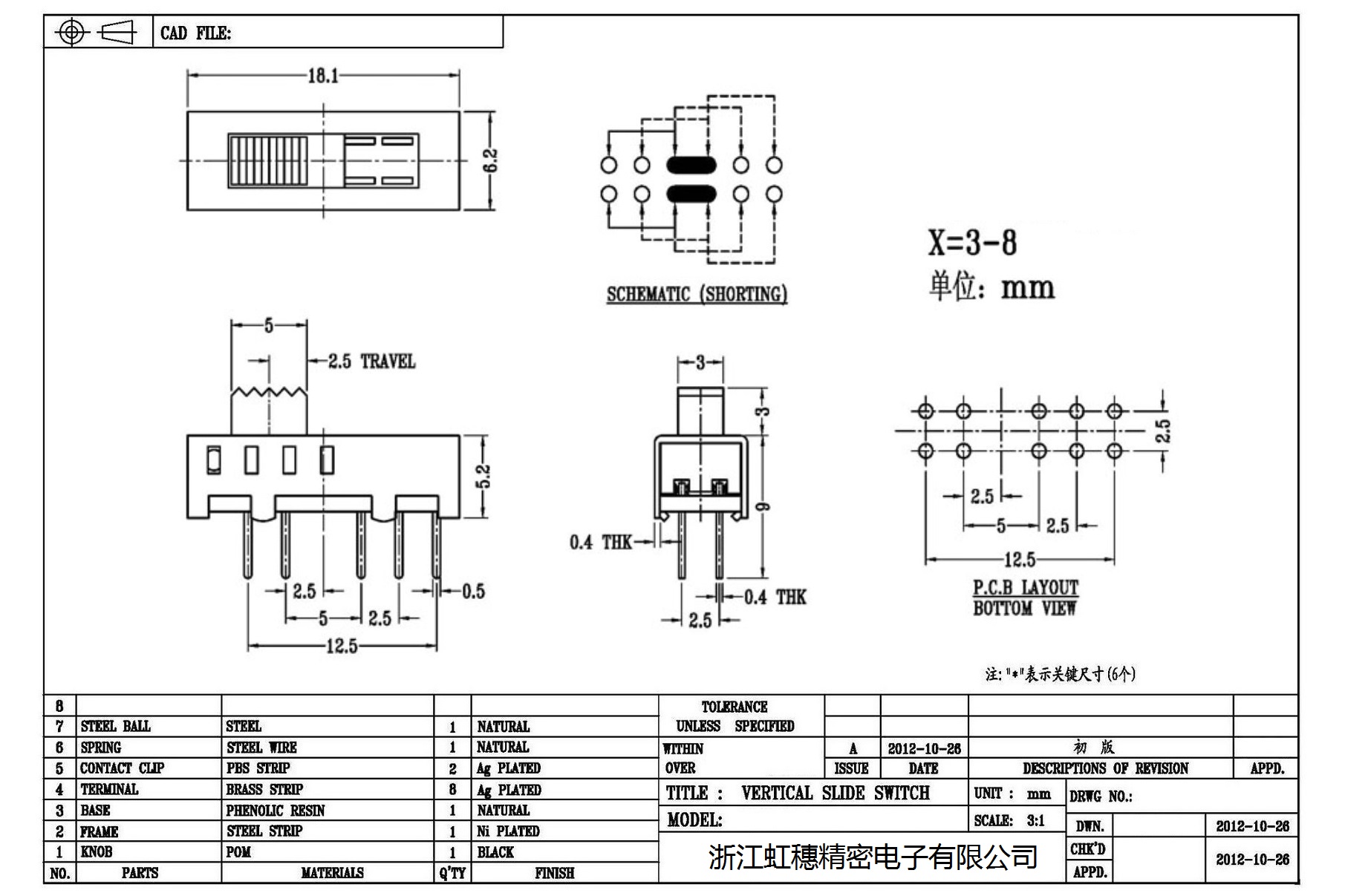 Verticaltoggle switch side dial/ Vertical slide switch technical indicators