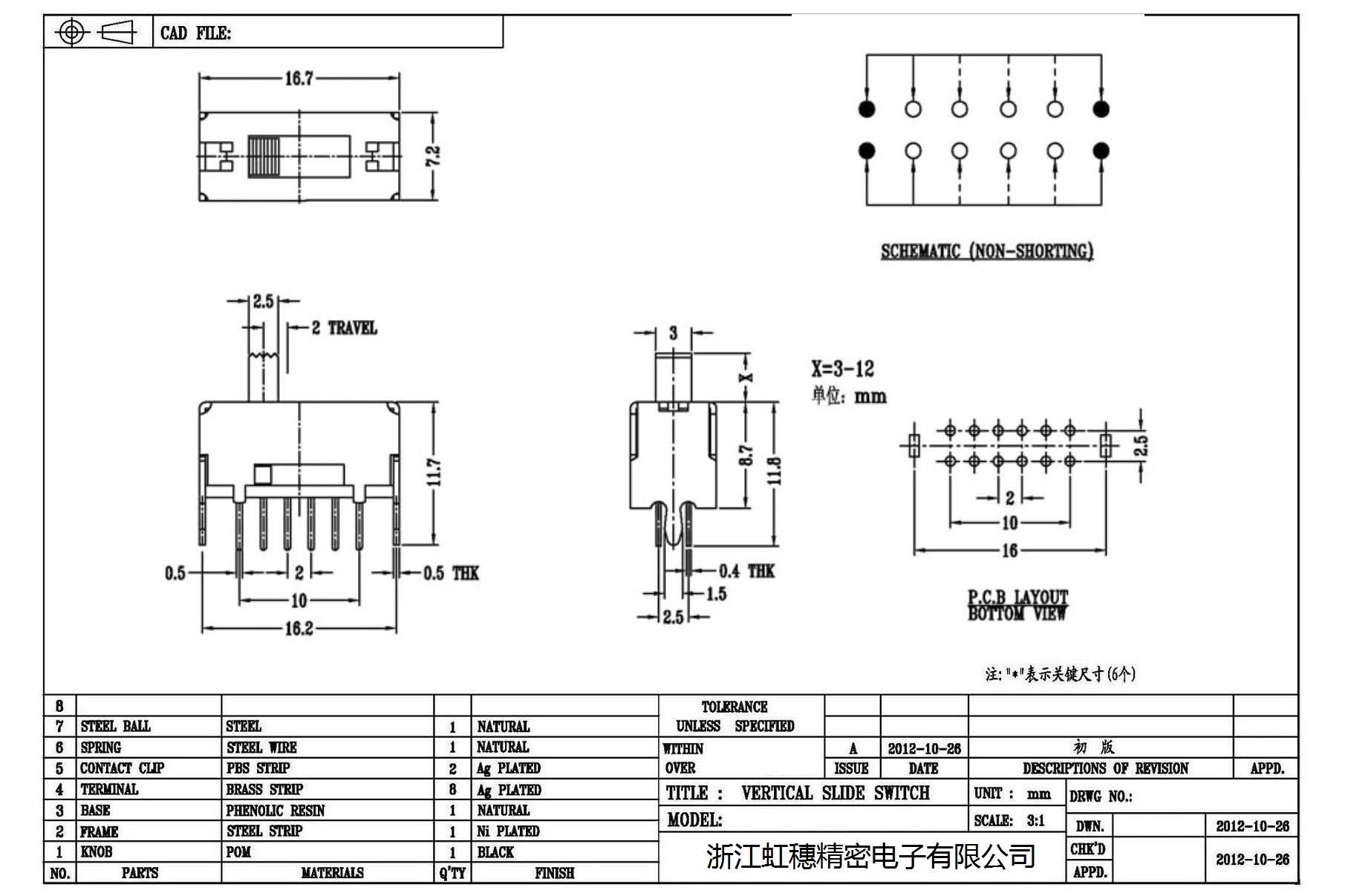 Verticaltoggle switch side dial/ Vertical slide switch technical indicators