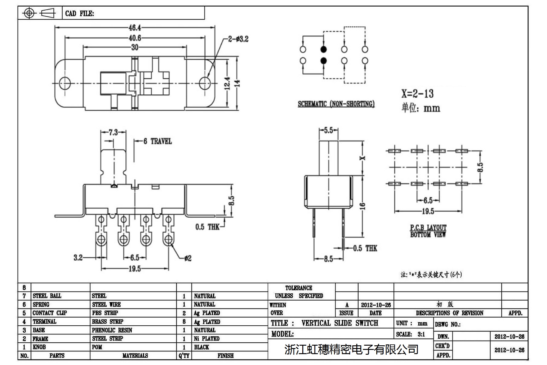 Verticaltoggle switch side dial/ Vertical slide switch technical indicators