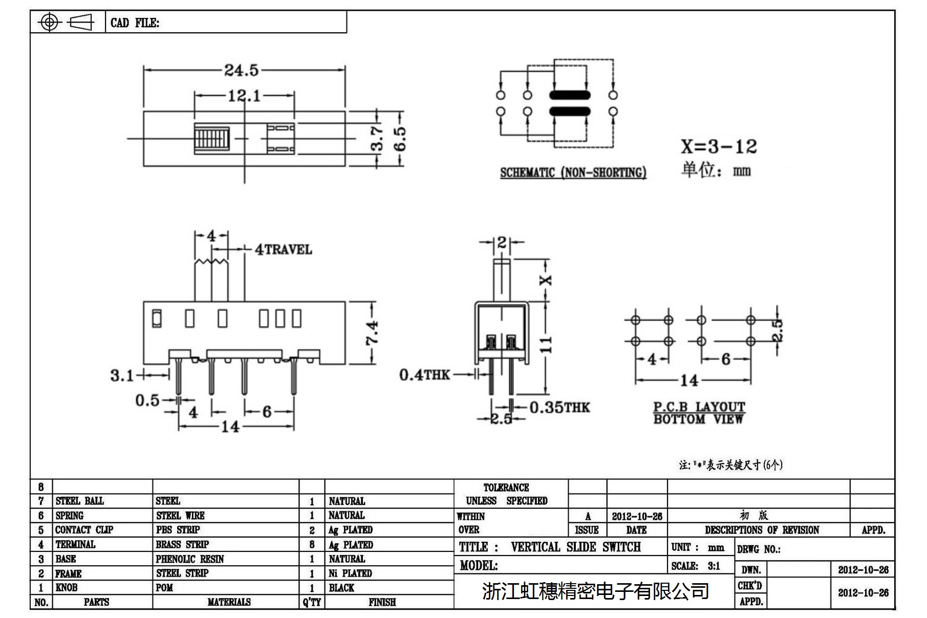 Verticaltoggle switch side dial/ Vertical slide switch technical indicators