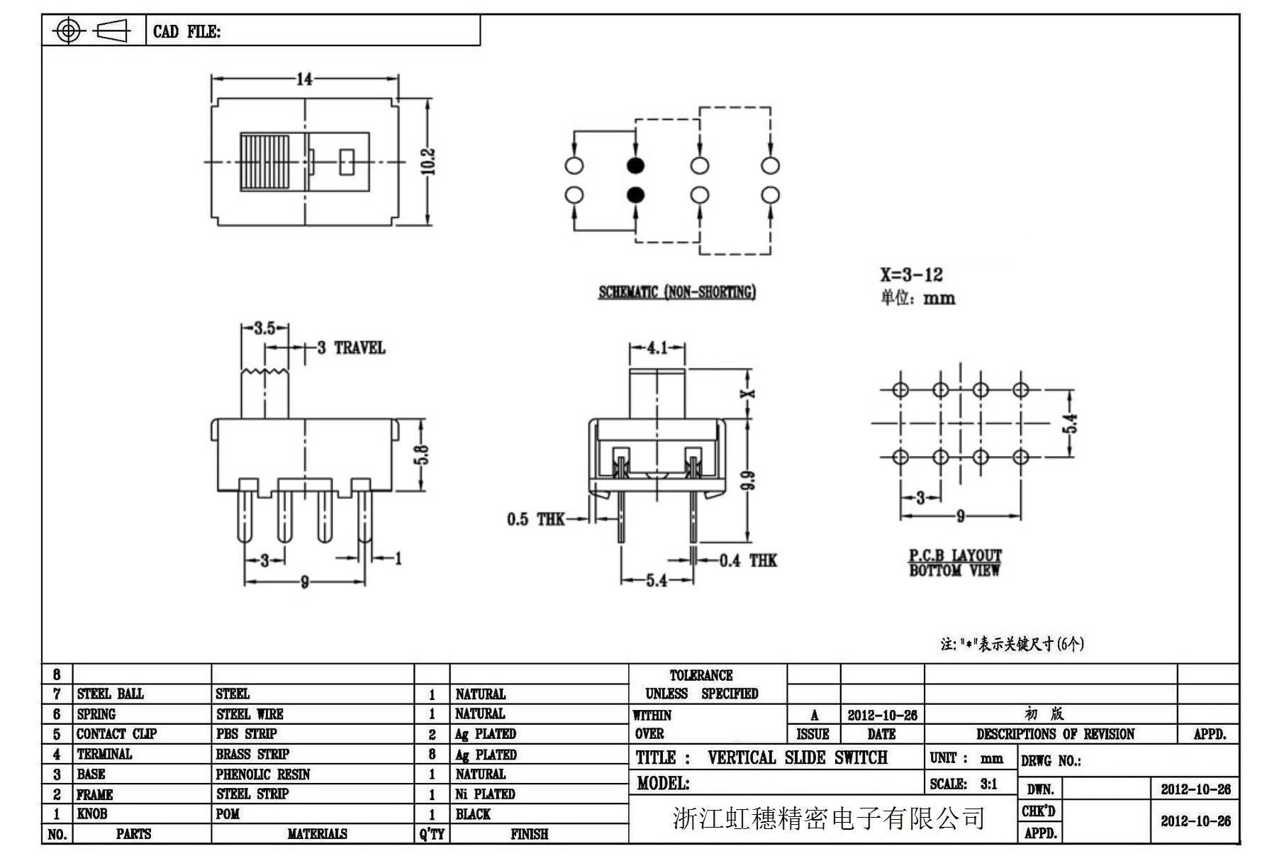 Verticaltoggle switch side dial/ Vertical slide switch technical indicators