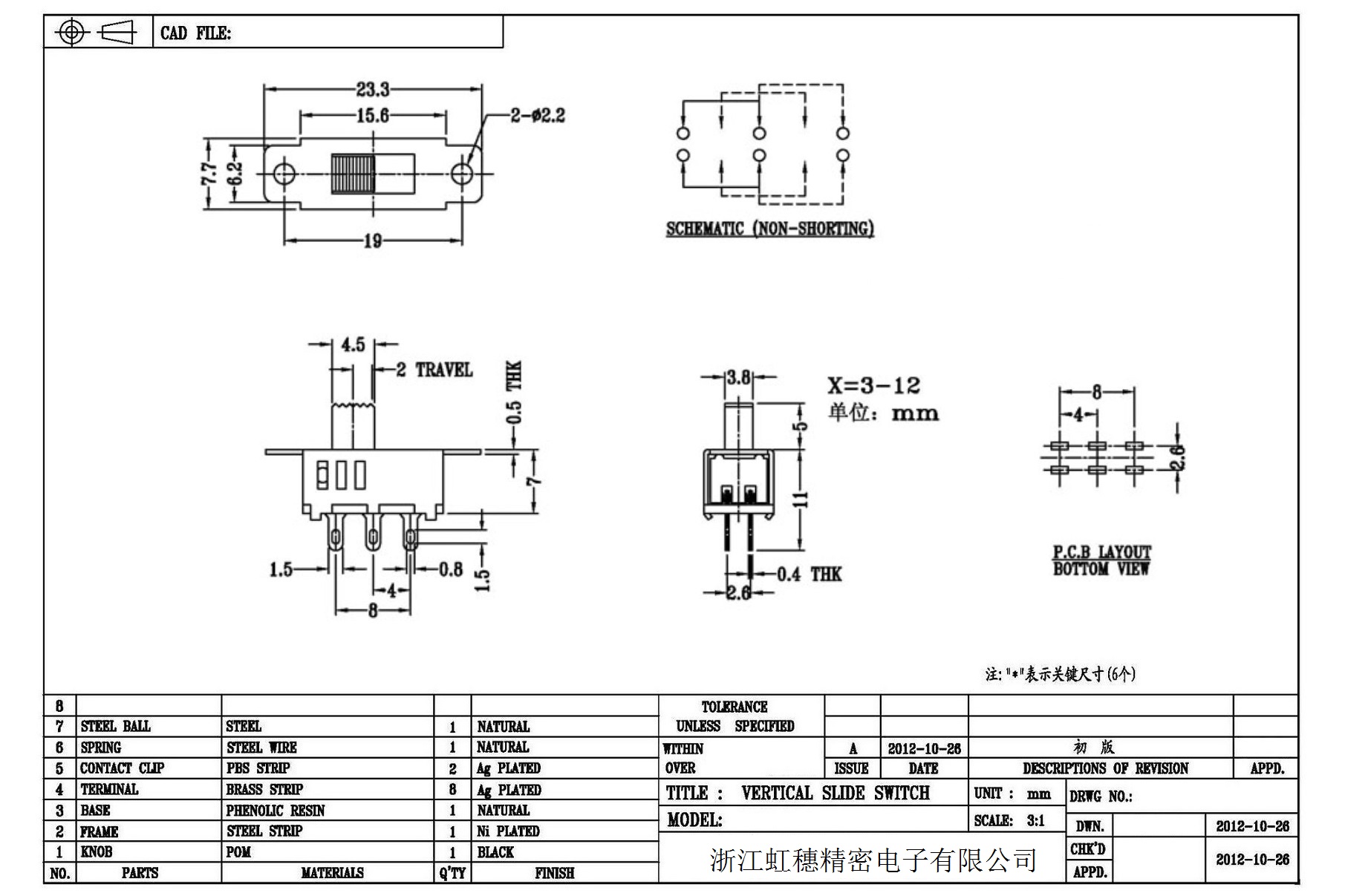 Verticaltoggle switch side dial/ Vertical slide switch technical indicators