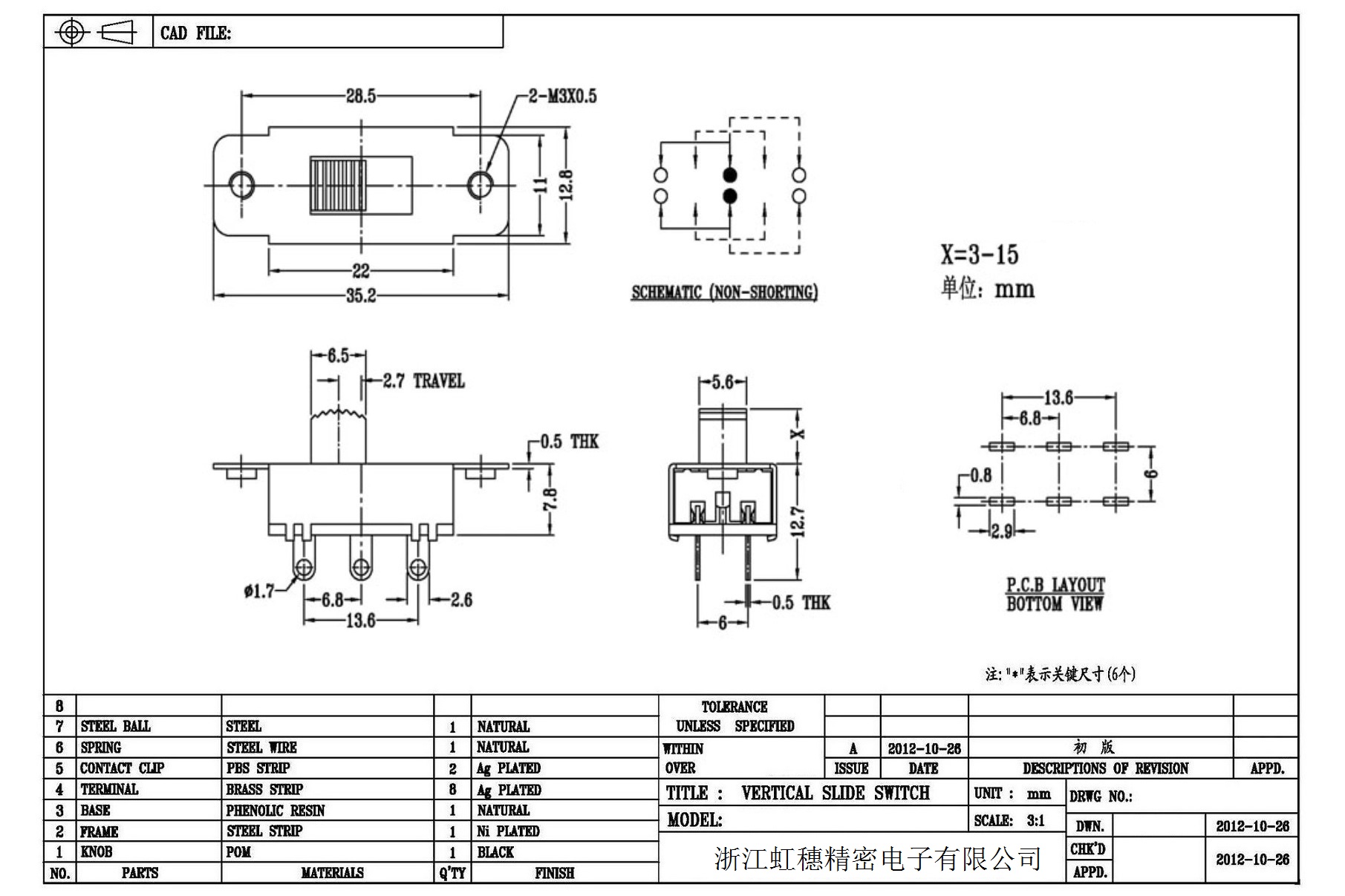 Verticaltoggle switch side dial/ Vertical slide switch technical indicators