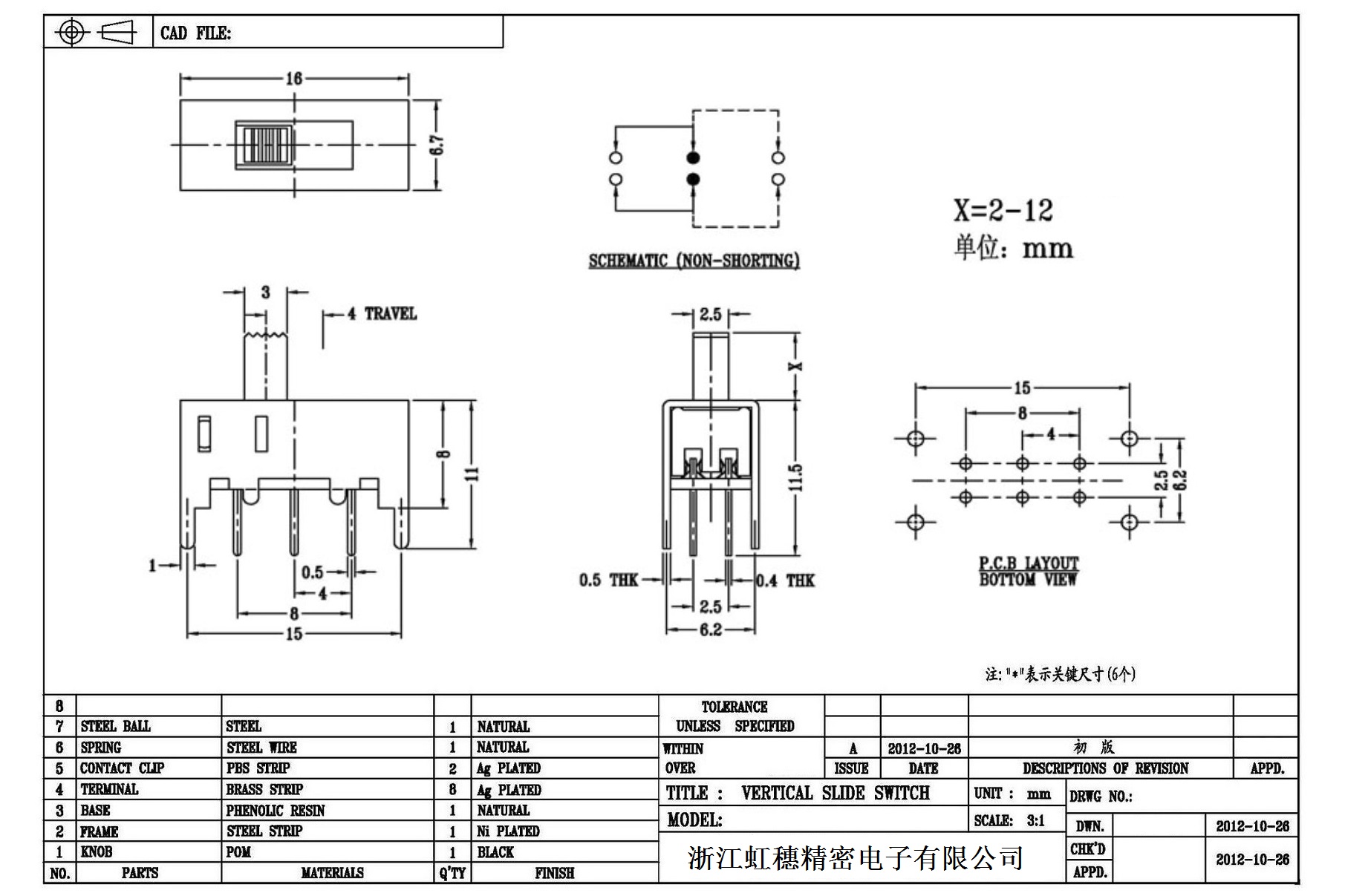 Verticaltoggle switch side dial/ Vertical slide switch technical indicators