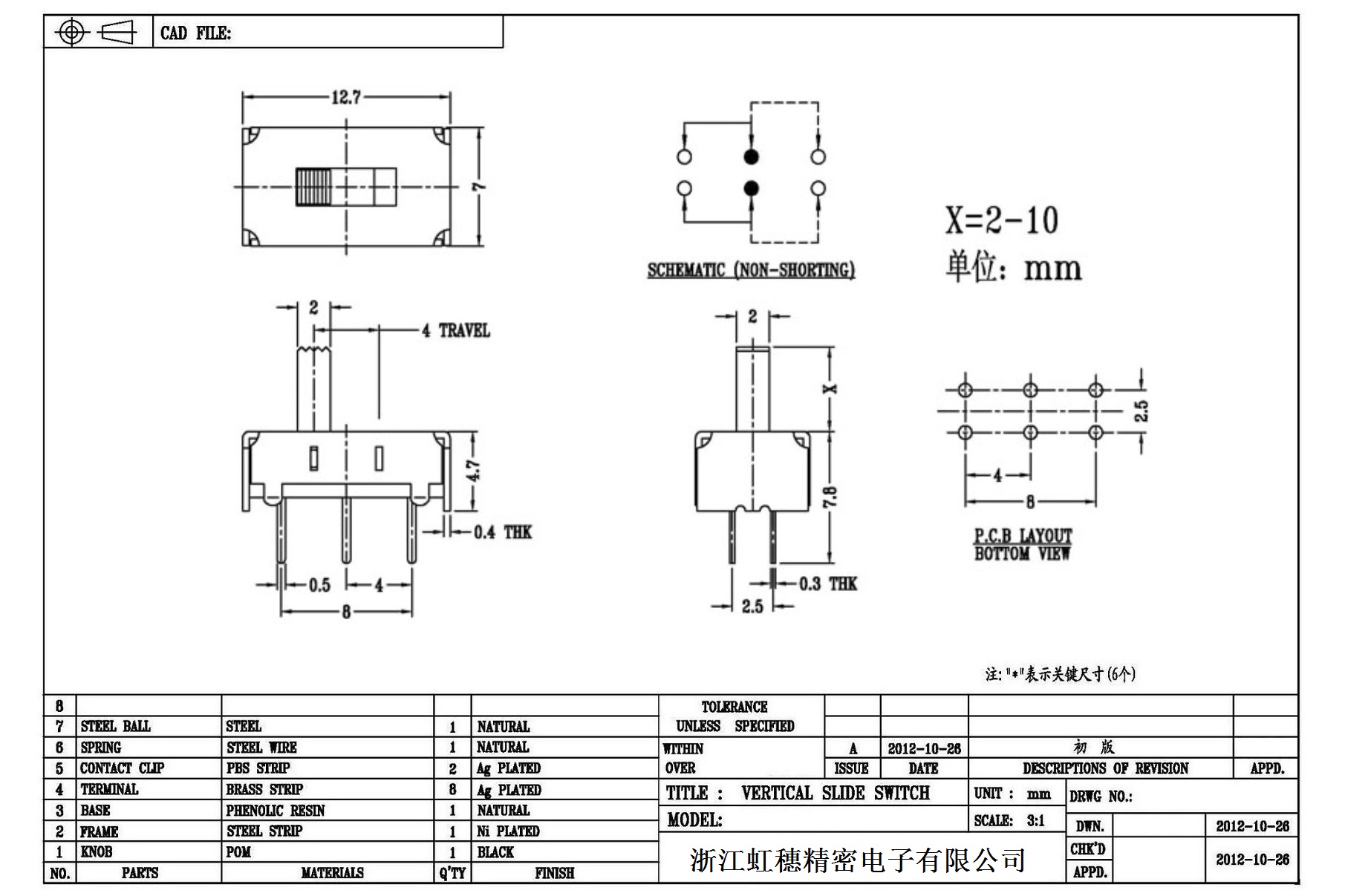 Verticaltoggle switch side dial/ Vertical slide switch technical indicators