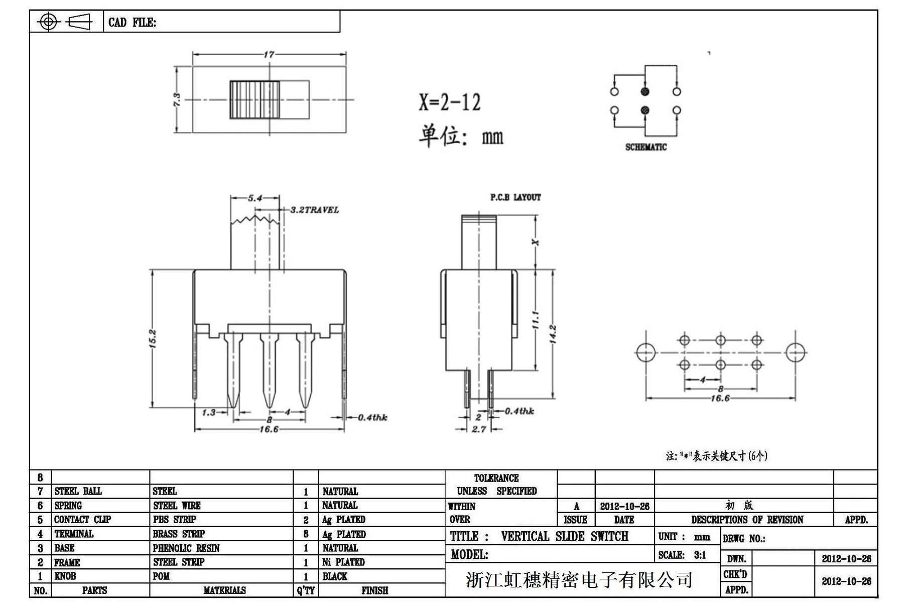 Verticaltoggle switch side dial/ Vertical slide switch technical indicators