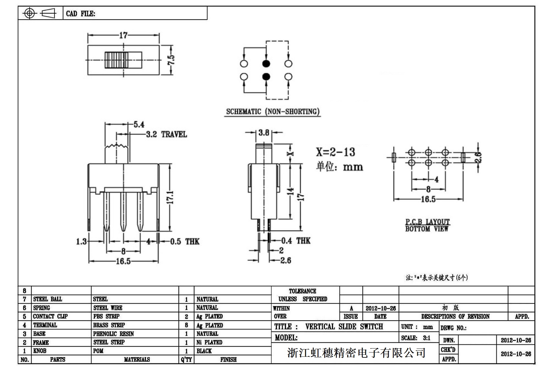 Verticaltoggle switch side dial/ Vertical slide switch technical indicators