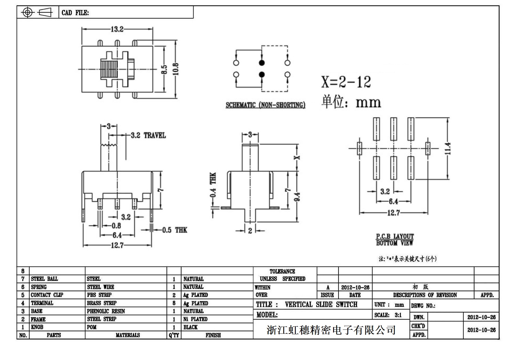Verticaltoggle switch side dial/ Vertical slide switch technical indicators