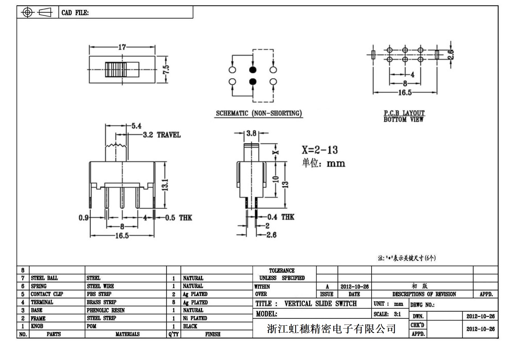 Verticaltoggle switch side dial/ Vertical slide switch technical indicators