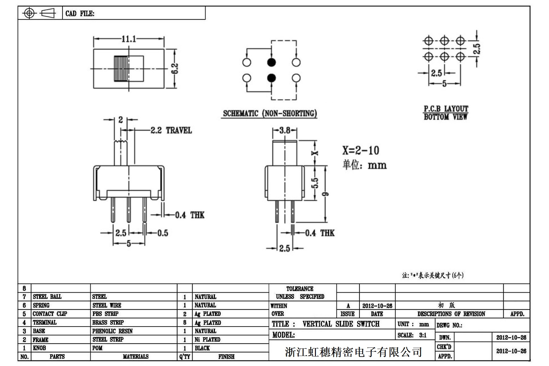 Verticaltoggle switch side dial/ Vertical slide switch technical indicators