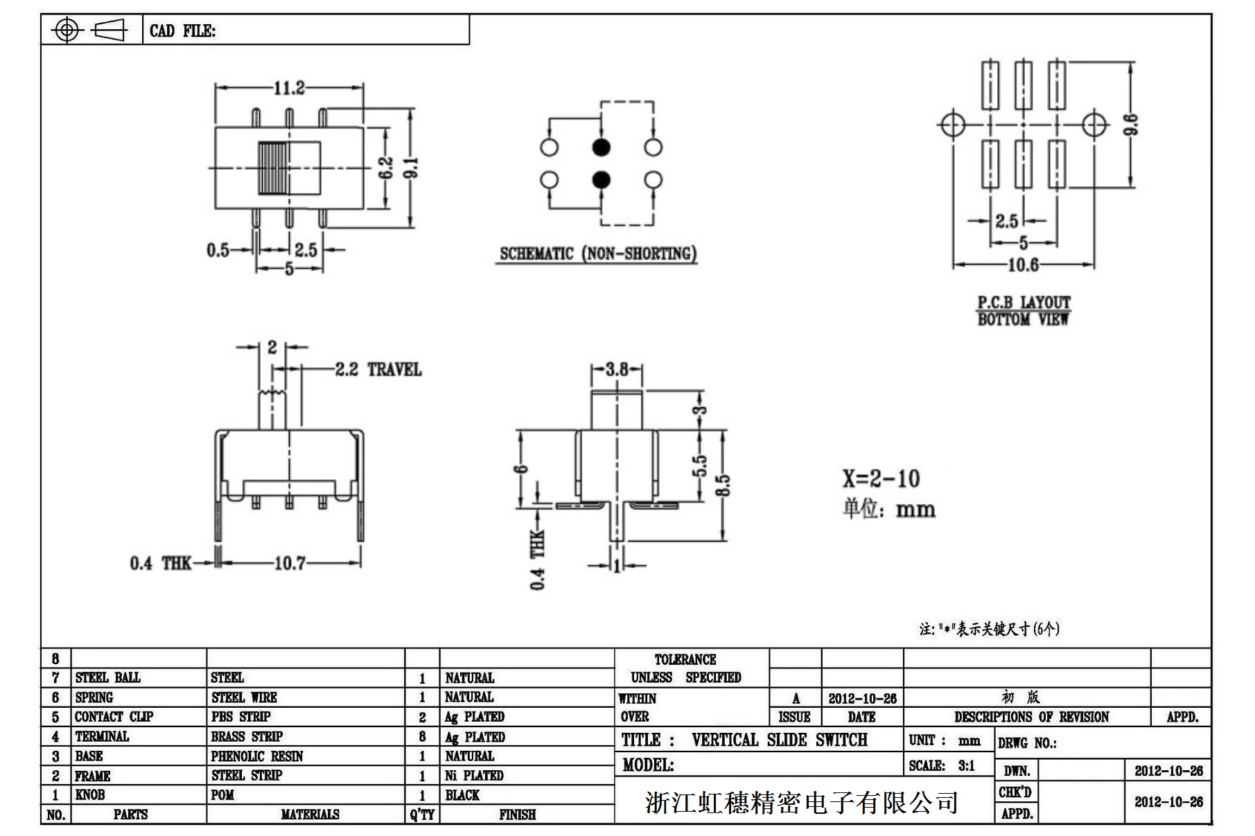 Verticaltoggle switch side dial/ Vertical slide switch technical indicators