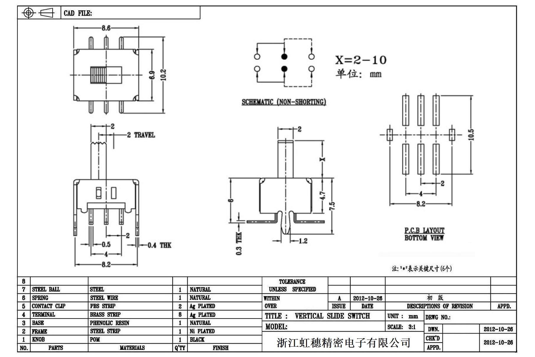 Verticaltoggle switch side dial/ Vertical slide switch technical indicators