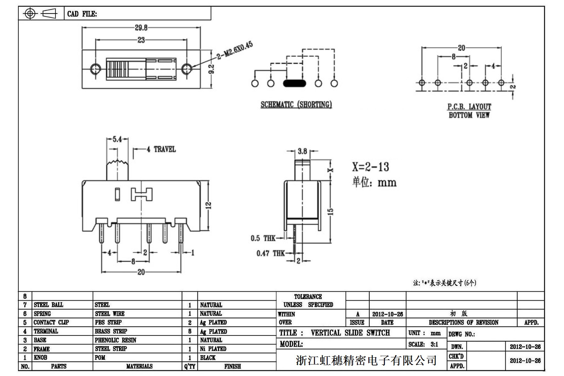 Verticaltoggle switch side dial/ Vertical slide switch technical indicators