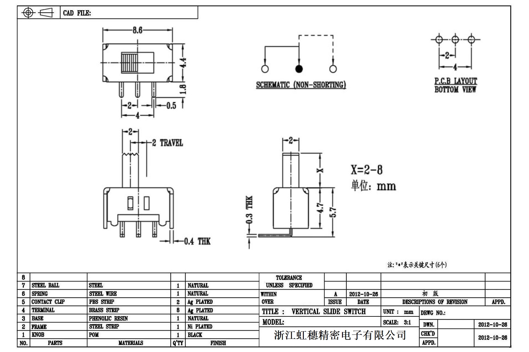 Verticaltoggle switch side dial/ Vertical slide switch technical indicators