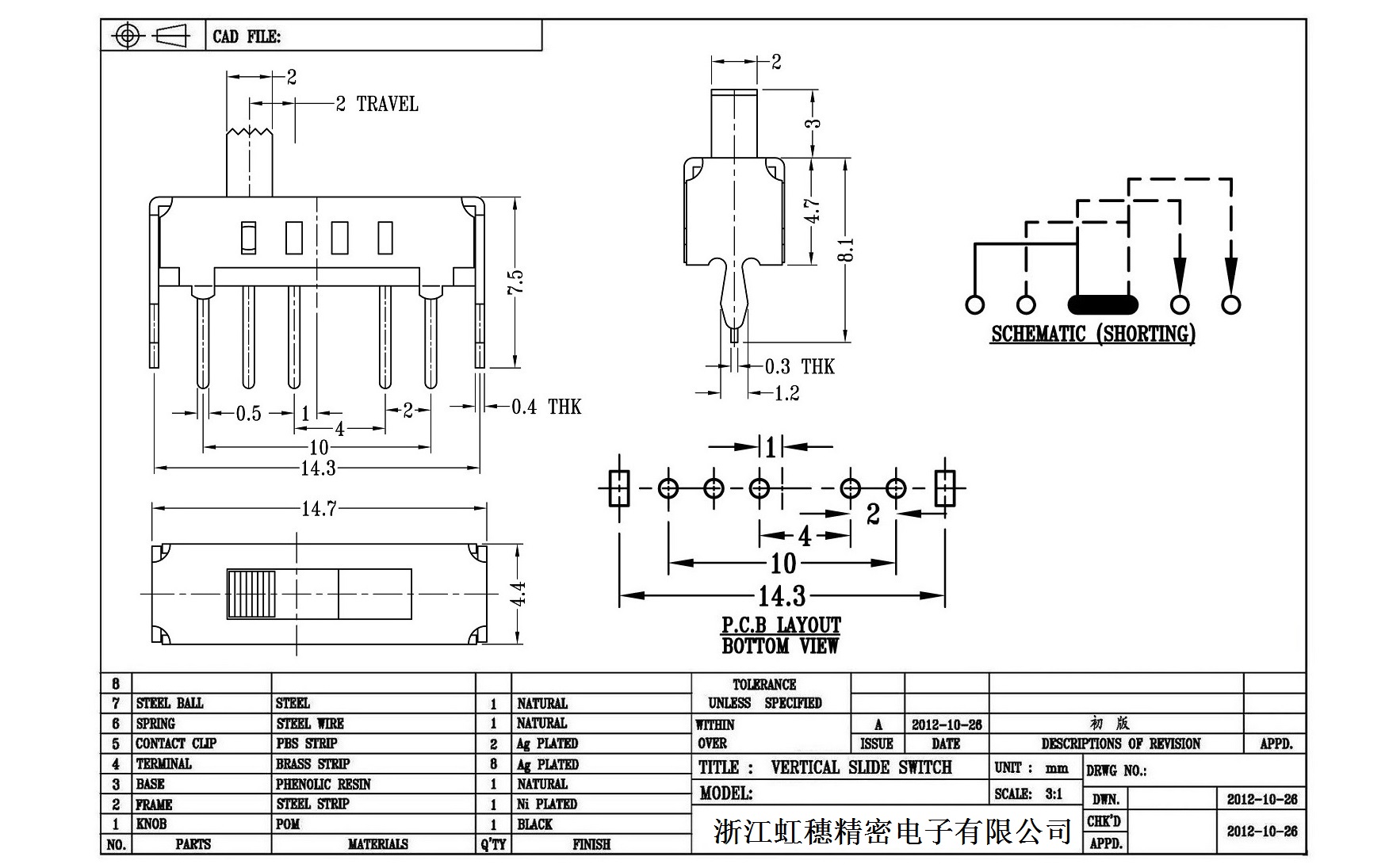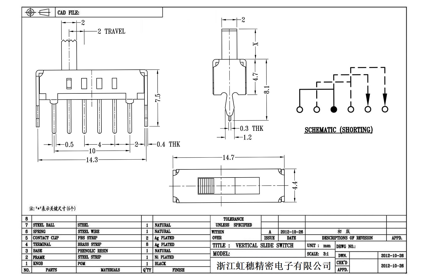 Vertical toggle switch side dial/ Vertical slide switch technical indicators