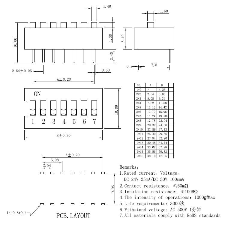 3. 絕緣電阻: 100MQ 4. 操作力: 1000gfMax