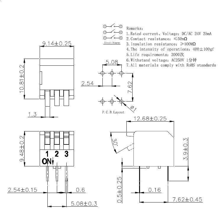 1. 額定電流、電壓: 直流/交流24V25mA 2. 接觸電阻: ≤50mQ