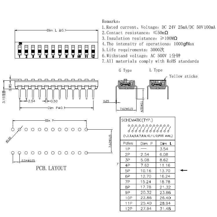 3. 絕緣電阻: 100MQ 4. 操作力: 1000gfMax