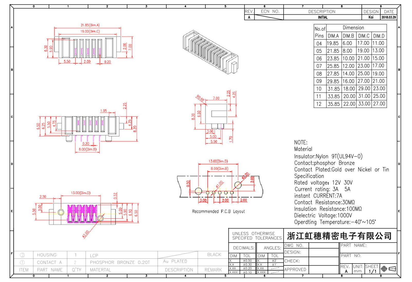 絕緣主體:Nylon 6T/9TUL94V-0
