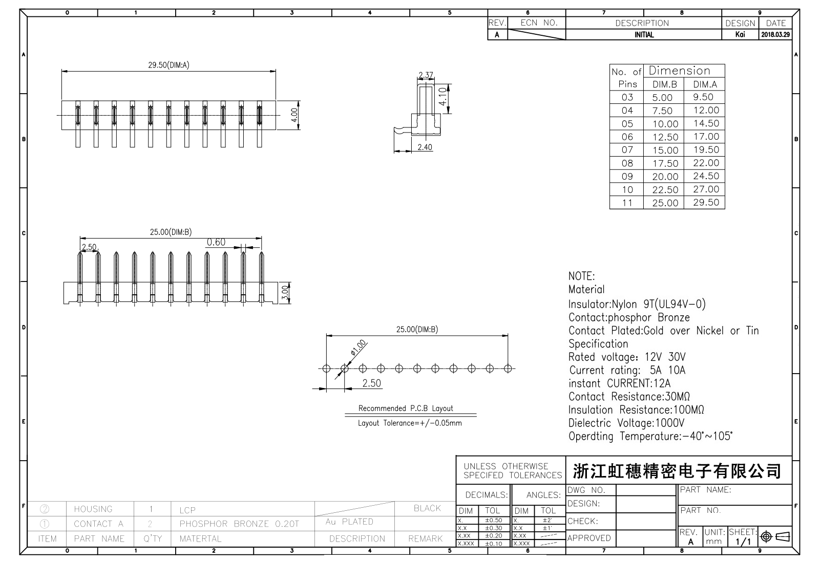 絕緣主體:Nylon 6T/9T(UL94V-0)