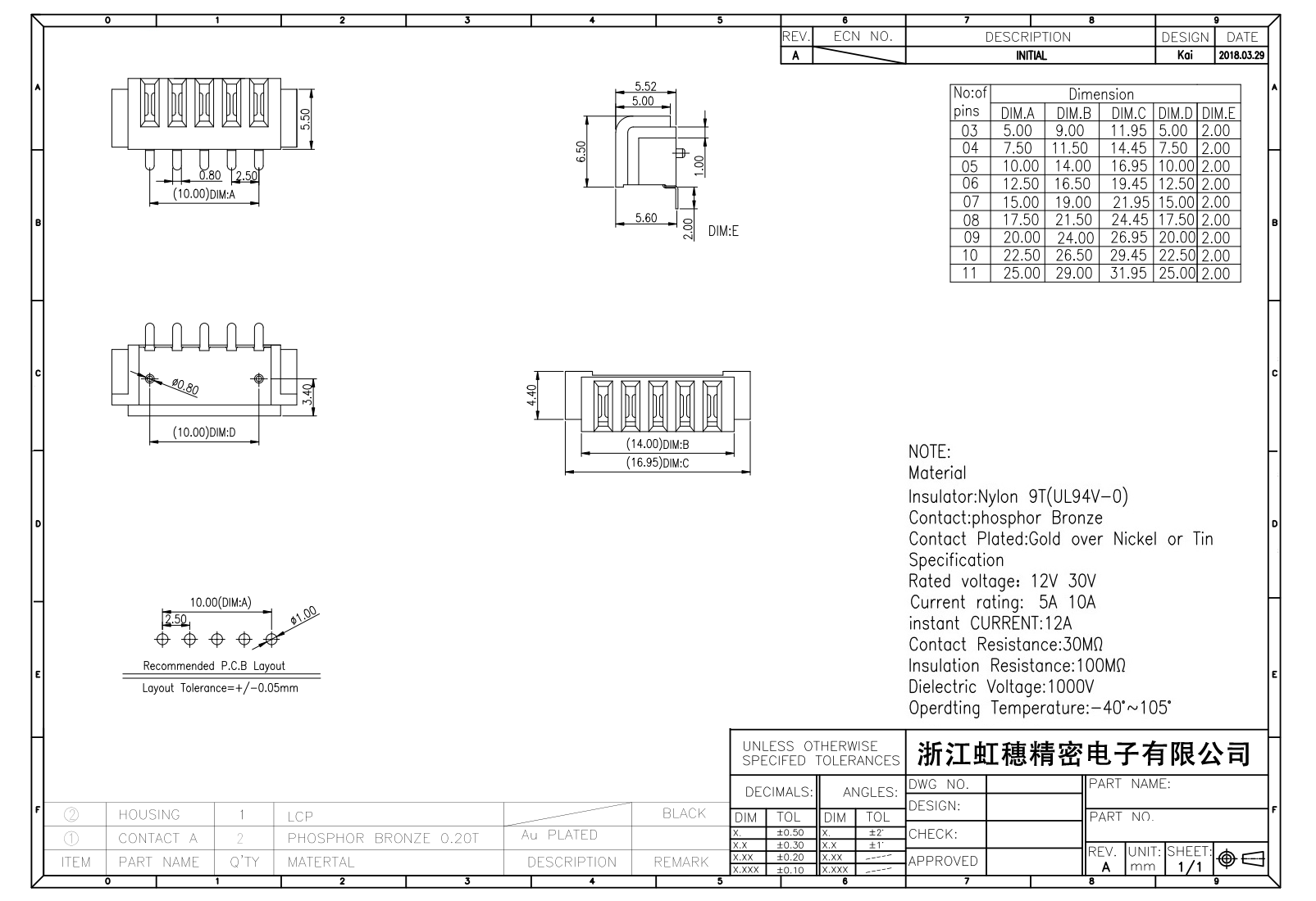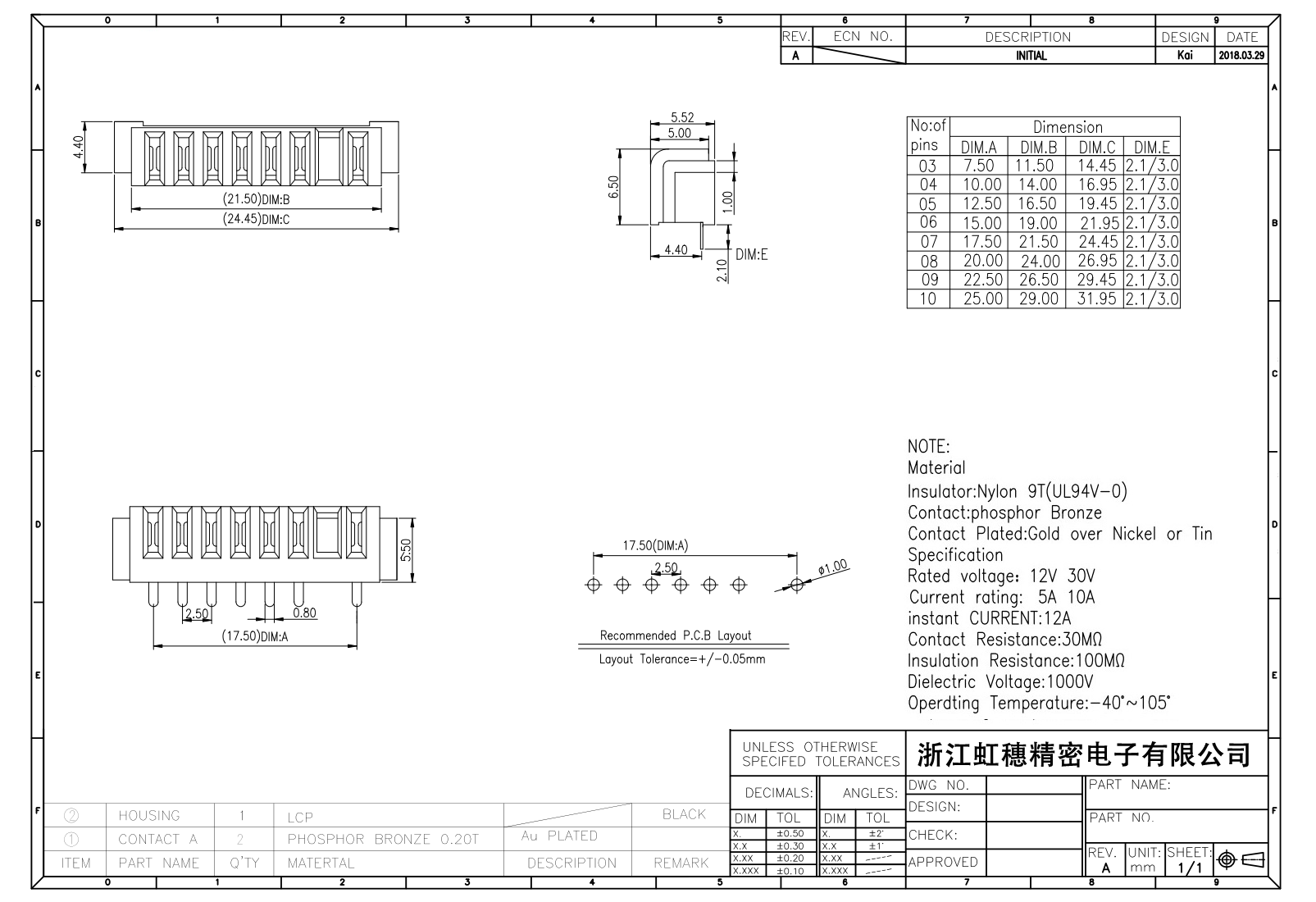 表面鍍層:金在鎳/錫之上,鍍層厚度3U