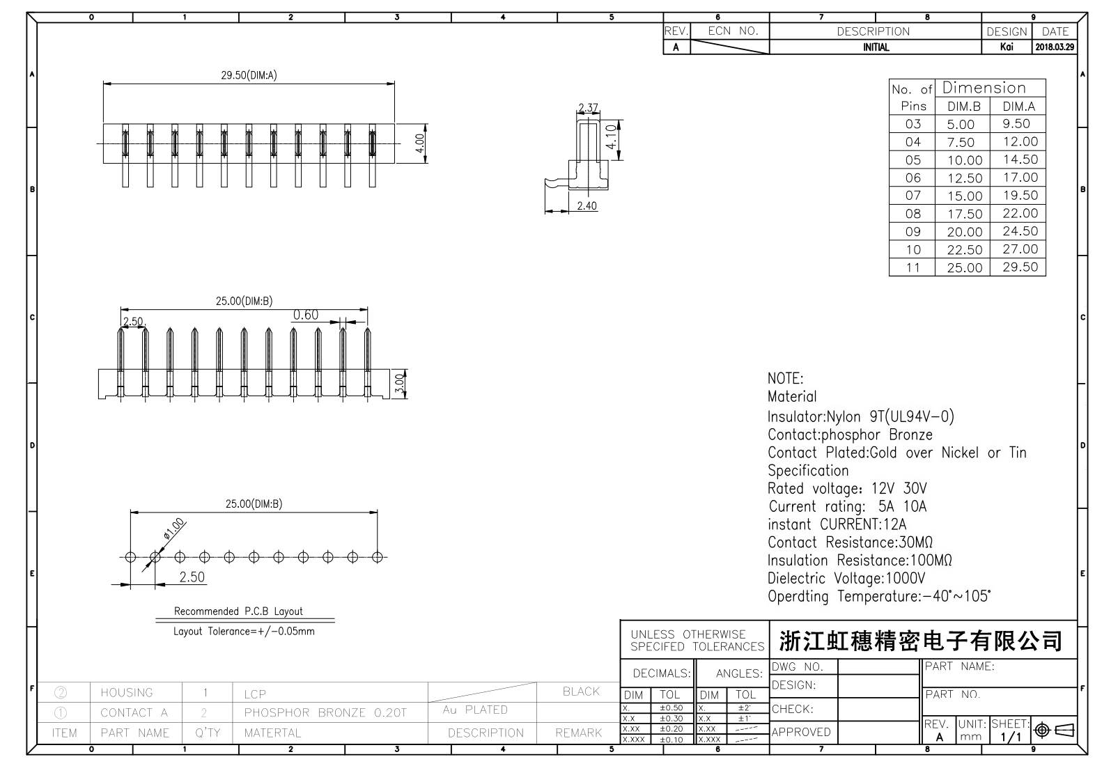 絕緣主體:Nylon 6T/9TUL94V-0